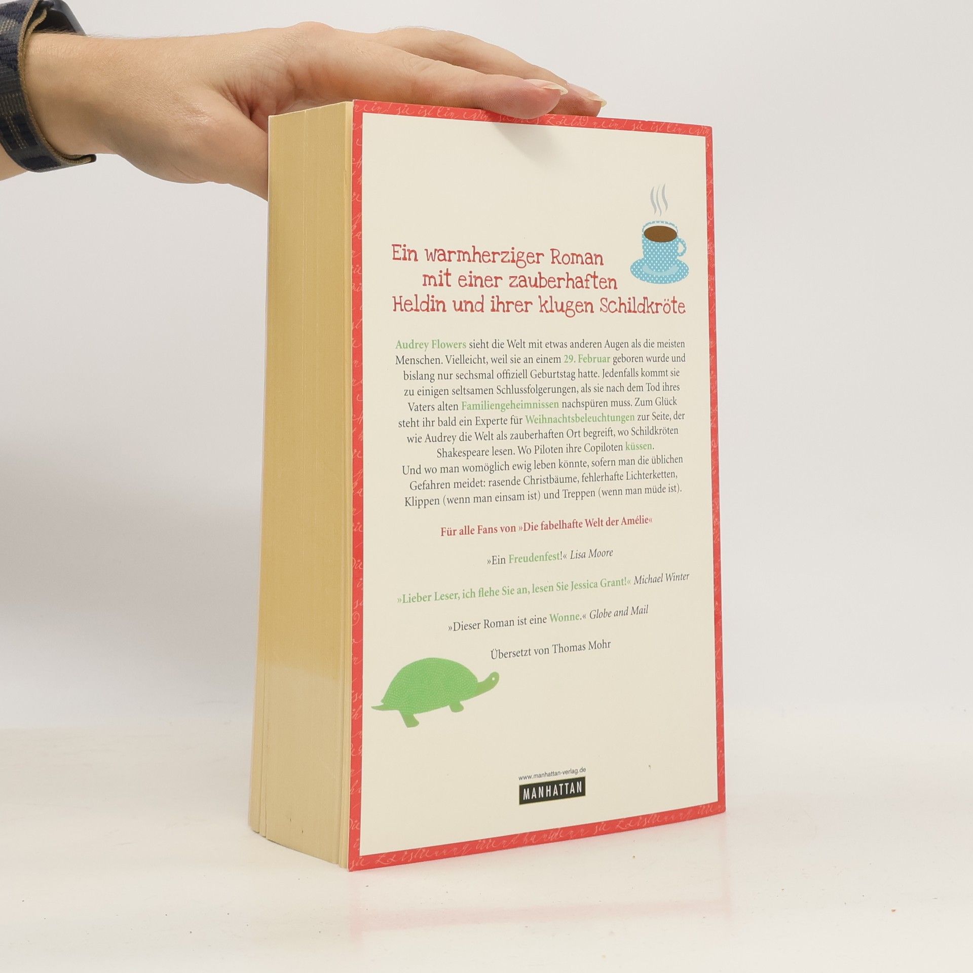Warmherzig und bezaubernd – ein Roman für alle Fans von 'Die fabelhafte Welt der Amélie' Regel Nr. 1 für Schildkrötenbesitzer: Halte eine Schildkröte niemals für tot. Audrey Flowers vertritt diese optimistische Haltung nicht nur im Blick auf ihre Schildkröte Winnifred. Als Audreys Vater bei einem Unfall schwer verletzt wird, will die junge Frau nicht glauben, dass er tatsächlich sterben könnte. Doch schließlich muss sie nicht nur seinen Tod verarbeiten, sondern auch einige Geheimnisse aufdecken, die er ihr hinterlassen hat. Sie findet heraus, was Toff, den Mann aus Cambridge, mit ihrer Familie verbindet. Und warum Onkel Thoby seit ihrer Kindheit bei ihnen lebt. Außerdem lernt sie einen Experten für Weihnachtsbeleuchtungen kennen, der sich schon bald rührend um sie kümmert. Wie Audrey sieht auch er die Welt als zauberhaften Ort – und das ist sie tatsächlich: Schildkröten lesen Shakespeare. Piloten küssen ihre Copiloten. Und man könnte womöglich ewig leben, sofern man die üblichen Gefahren meidet: rasende Christbäume; fehlerhafte Lichterketten; Klippen, wenn man einsam ist, und Treppen, wenn man müde ist. Ein wunderbarer Roman mit einer zauberhaften Heldin und ihrer klugen Schildkröte.