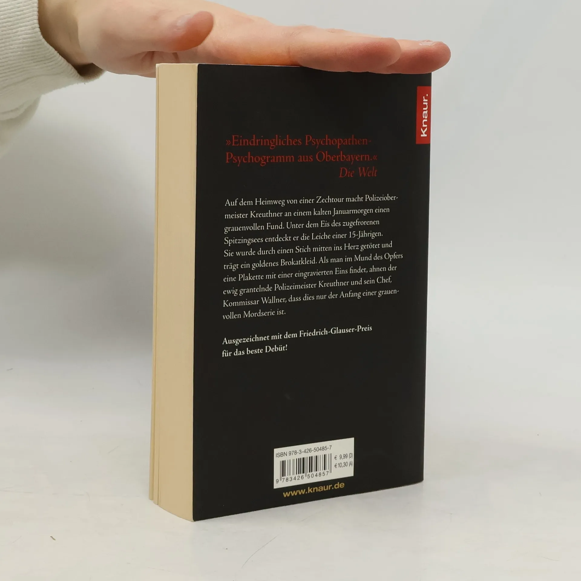 Auf dem Heimweg von einer Zechtour macht Polizeiobermeister Kreuthner an einem eisigen Januarmorgen einen grauenvollen Fund. Unter dem Eis des zugefrorenen Spitzingsees entdeckt er die Leiche einer 15-Jährigen. Sie wurde durch einen Stich mitten ins Herz getötet und trägt ein goldenes Brokatkleid. Als man im Mund des Opfers eine Plakette mit einer eingravierten Eins findet, ahnen der ewig grantelnde Polizeiobermeister Kreuthner und sein Chef, Kommissar Wallner, dass dies nur der Anfang einer grauenvollen Mordserie ist. Der mit dem Friedrich-Glauser-Preis ausgezeichnete Autor Andreas Föhr blickt mit seinem außergewöhnlichen Debütroman in mörderisch kalte Abgründe – mitten im idyllischen Oberbayern.