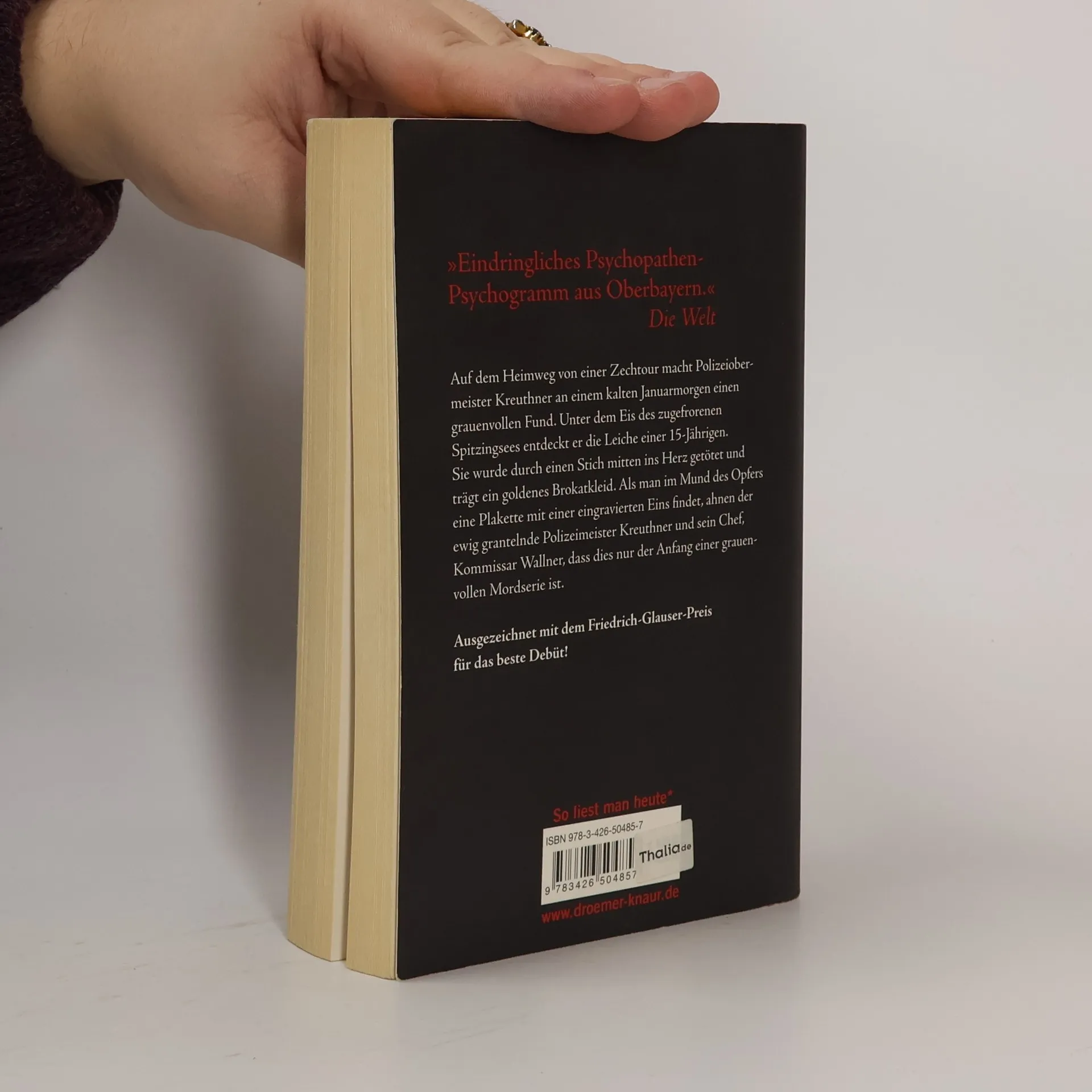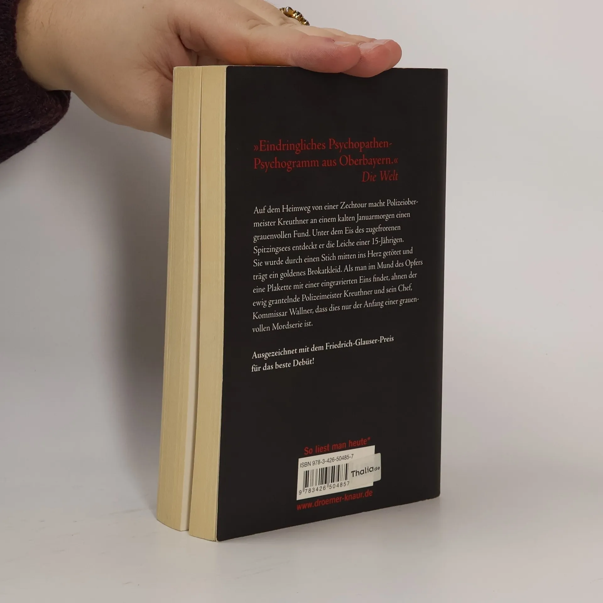 Auf dem Heimweg von einer Zechtour macht Polizeiobermeister Kreuthner an einem eisigen Januarmorgen einen grauenvollen Fund. Unter dem Eis des zugefrorenen Spitzingsees entdeckt er die Leiche einer 15-Jährigen. Sie wurde durch einen Stich mitten ins Herz getötet und trägt ein goldenes Brokatkleid. Als man im Mund des Opfers eine Plakette mit einer eingravierten Eins findet, ahnen der ewig grantelnde Polizeiobermeister Kreuthner und sein Chef, Kommissar Wallner, dass dies nur der Anfang einer grauenvollen Mordserie ist. Der mit dem Friedrich-Glauser-Preis ausgezeichnete Autor Andreas Föhr blickt mit seinem außergewöhnlichen Debütroman in mörderisch kalte Abgründe – mitten im idyllischen Oberbayern.
