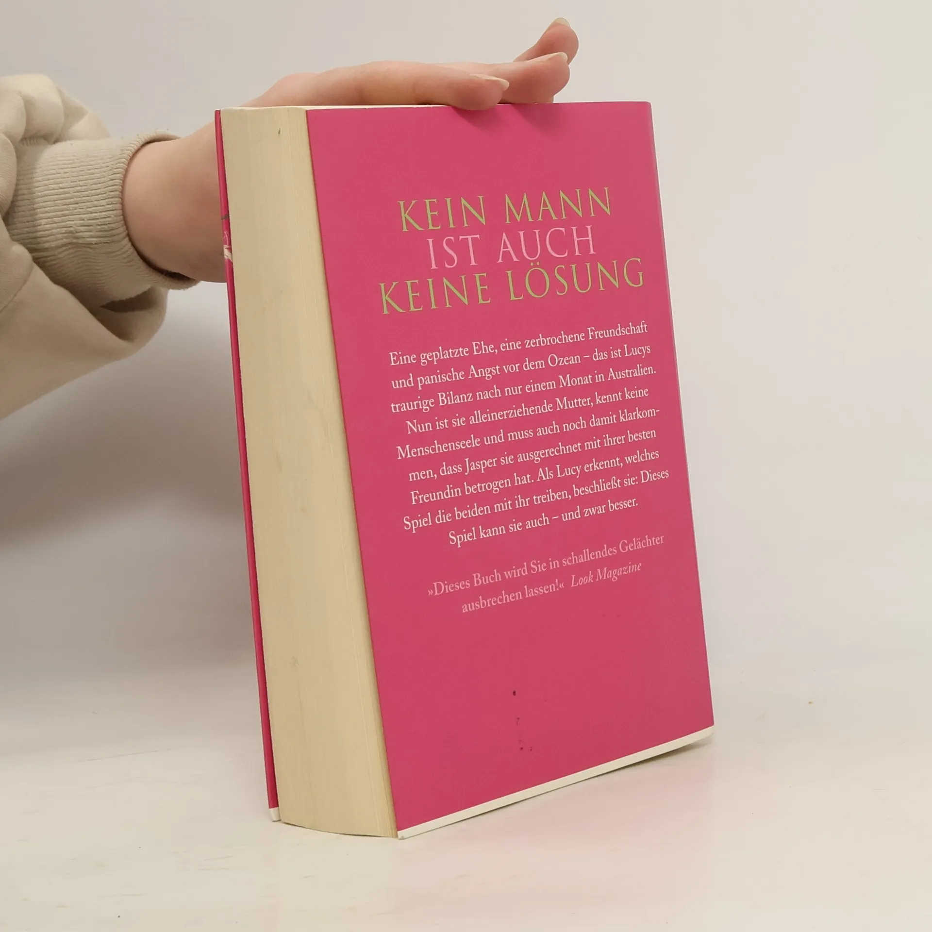 Kein Mann ist auch keine Lösung Die 42-jährige Lucy kann es kaum fassen, als ihr Mann sie kurz nach ihrem Umzug nach Australien verlässt. Nun ist sie alleinerziehende Mutter, kennt keine Menschenseele und erfährt auch noch, dass Jasper sie mit ihrer besten Freundin betrogen hat. Als Lucy begreift, welches Spiel die beiden mit ihr treiben, wird ihr eines klar: Dieses Spiel kann sie auch - und wie! Eine geplatzte Ehe, eine zerbrochene Freundschaft und panische Angst vor dem Ozean ist Lucys schaurige Bilanz nach nur einem Monat in Australien. Koffer packen und heimfliegen kommt nicht infrage, denn trotz allen Lügens und Betrügens will Lucy nur eins - ihren Mann zurück. Erst nach vielen Tränen, Rotwein und Krach mit ihren Teenagertöchtern begreift Lucy, dass sie auf eigenen Beinen stehen muss, um wieder glücklich zu werden. Mühsam macht sie die ersten Schritte, doch bald schon setzt sie zum Sprung an: Ihr Ziel sind ihr Exmann und ihre Exfreundin Renee.