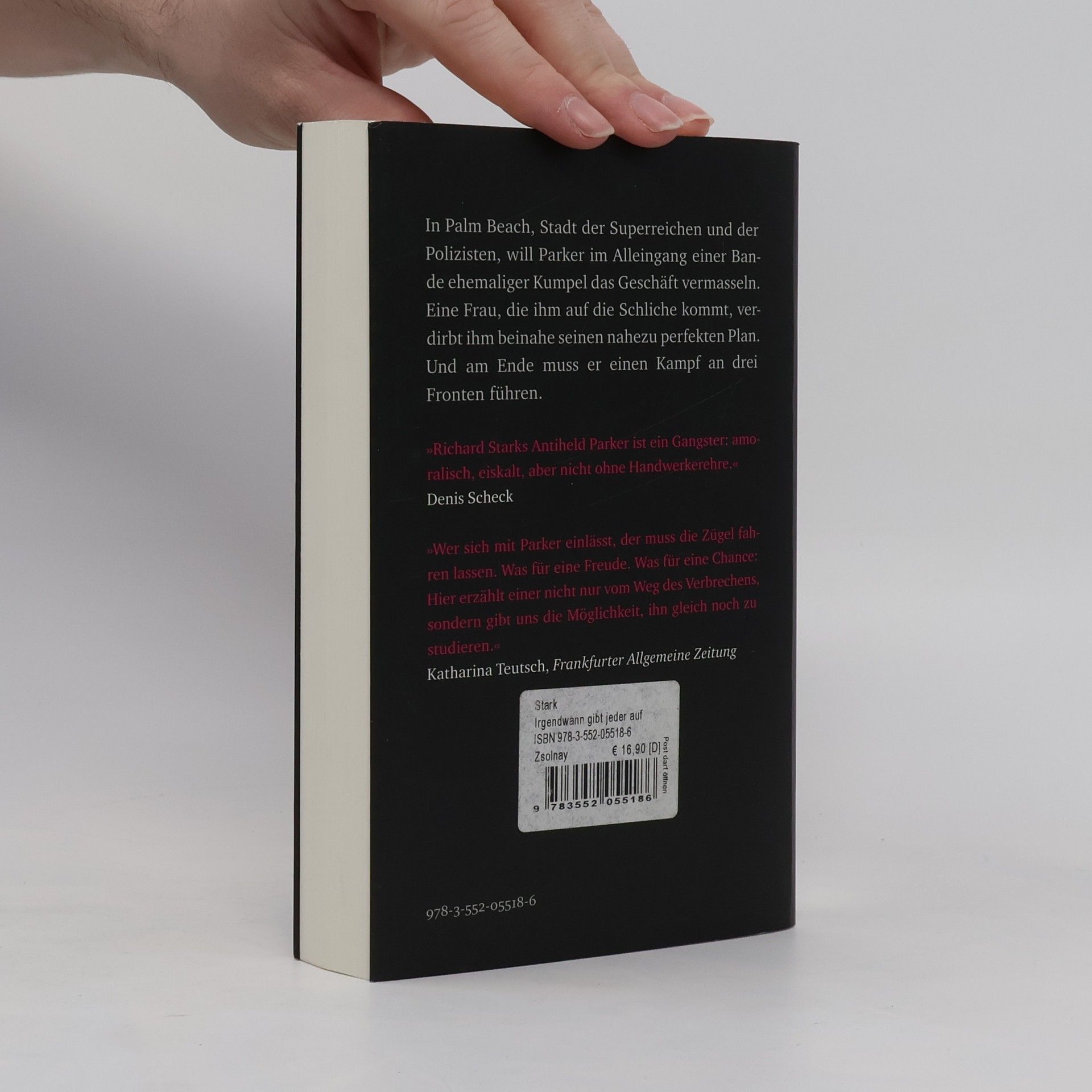 In Palm Beach, Stadt der Superreichen und der Polizisten, will Parker im Alleingang einer Bande ehemaliger Kumpel das Geschäft vermasseln. Sie wollen an den Schmuck, der bei einem Wohltätigkeitsfest versteigert werden soll. Eine Frau, die Parker auf die Schliche kommt, verdirbt ihm beinahe seinen nahezu perfekten Plan. Im neuen Thriller von Richard Stark, dem Kult-Krimi-Autor aus den USA, führt Parker, der einsame Wolf, einen Kampf an drei Fronten. Am Ende sind es - aparte Variante - die Bullen, die ihn retten.