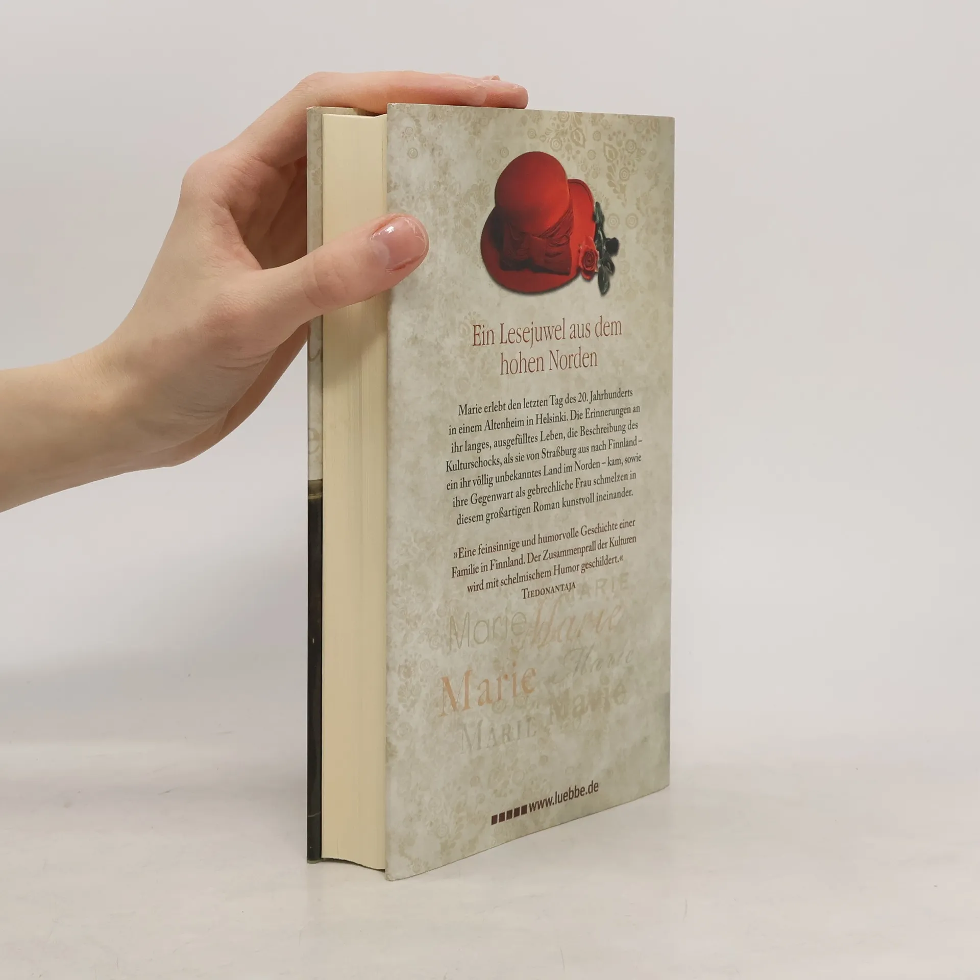 Marie durchlebt den letzten Tag des 20. Jahrhunderts in einem Altersheim in Helsinki. Die Erinnerungen an ihr langes, ausgefülltes Leben, die Beschreibung des Kulturschocks, als sie von Straßburg aus nach Finnland - in das für sie unbekannte Land - im Norden kam, sowie ihre Gegenwart als gebrechliche Frau schmelzen in diesem großartigen Roman kunstvoll ineinander.