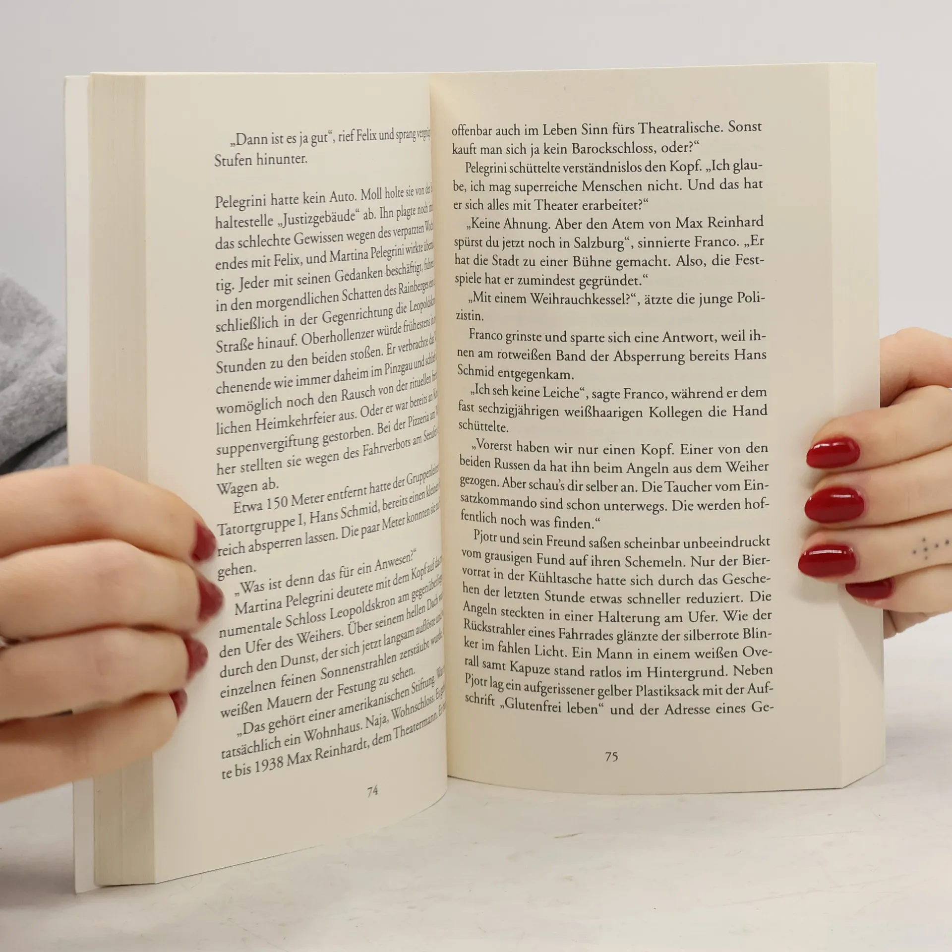 Mit einem skelettierten Kopf an der Angel haben die beiden Fischer am Leopoldskroner Weiher nicht gerechnet. Aber niemandem scheint der Kopf zu fehlen. Ein Fall für Franco Moll, Chefinspektor in der Abteilung „Leib und Leben“ der Salzburger Kriminalpolizei. Der alleinerziehende Vater kämpft nebenberuflich mit seinem 8-jährigen Sohn Felix und einem Karpfen in der Badewanne. Zur selben Zeit sucht eine Osteuropäerin verzweifelt nach ihrer ver missten Schwester und einer Möglichkeit, als Illegale zu überleben. Molls Kripo-Kollege Oberhollenzer kämpft derweil mit anderen Sorgen und opfert seinen Humor einer Krautsuppendiät. Der frischgebackene Jäger erwacht erst aus seiner Melancholie, als ein Wildschwein ein Leichenteil aus der Erde wühlt.