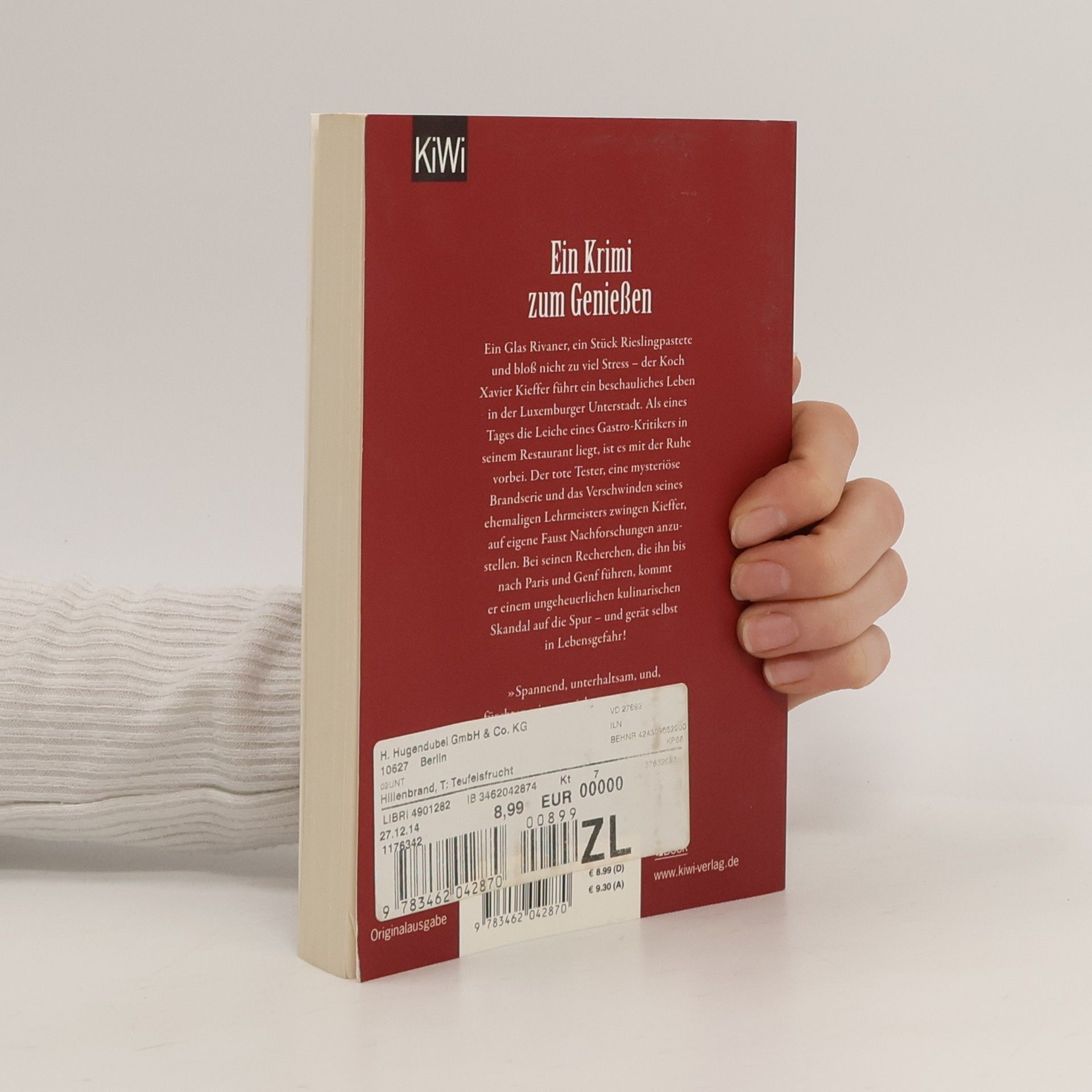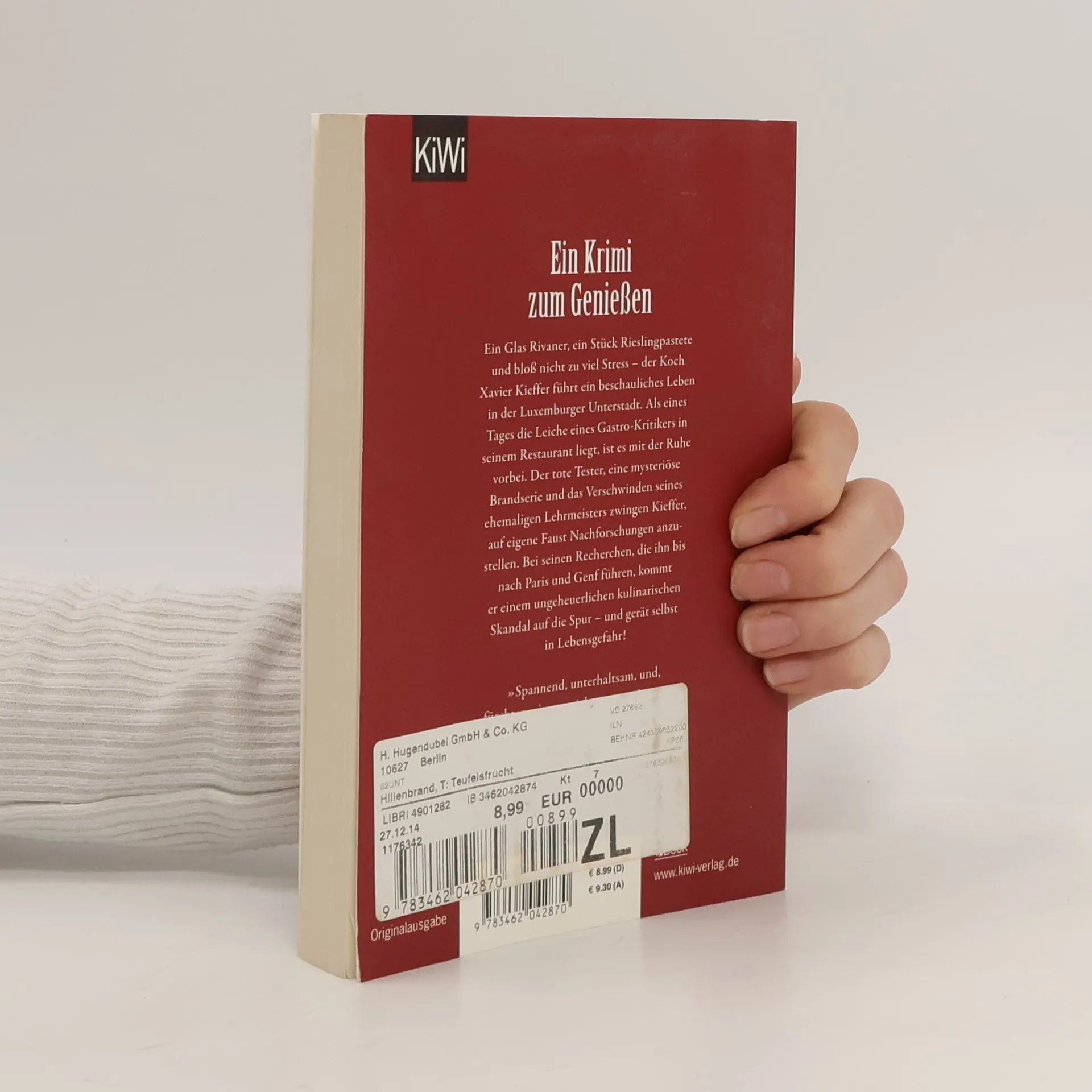 Ein Krimi zum Genießen! Der erste Fall für den kulinarischen Ermittler Xavier Kieffer. Der ehemalige Sternekoch Xavier Kieffer hat der Haute Cuisine abgeschworen und betreibt in der Luxemburger Unterstadt ein kleines Restaurant, wo er seinen Gästen Huesenziwwi, Bouneschlupp und Rieslingpaschtéit serviert. Doch dann bricht eines Tages ein renommierter Pariser Gastro-Kritiker tot in seinem Restaurant zusammen – und plötzlich steht Kieffer unter Mordverdacht. Als dann noch sein alter Lehrmeister spurlos verschwindet, beschließt der Luxemburger, die Ermittlungen selbst in die Hand zu nehmen; sie führen ihn bis nach Paris und Genf. Dabei stößt er auf eine mysteriöse, außergewöhnlich schmackhafte Frucht, auf gewissenlose Lebensmittelkonzerne und egomanische Fernsehköche. Immer tiefer taucht Kieffer in die von Konkurrenzkampf und Qualitätsdruck beherrschte Gourmetszene ein – und erkennt, was auf dem Spiel steht.