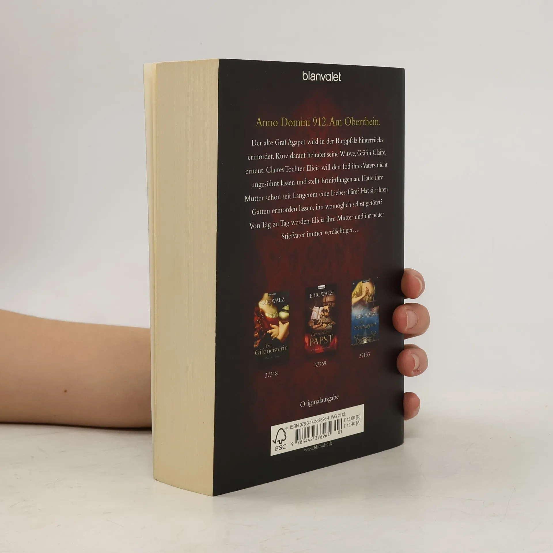 Machtspiele und Liebe, Verrat und Rache Anno Domini 912, am Oberrhein. Der alte Graf Agapet wird in der Burgpfalz hinterrücks ermordet. Kurz darauf heiratet seine Witwe, Gräfin Claire, erneut. Claires Tochter Elicia will den Tod ihres Vaters nicht ungesühnt lassen und stellt Ermittlungen an. Hatte ihre Mutter schon seit Längerem eine Liebesaffäre? Hat sie ihren Gatten ermorden lassen, ihn womöglich selbst getötet? Von Tag zu Tag werden Elicia ihre Mutter und ihr neuer Stiefvater immer verdächtiger.