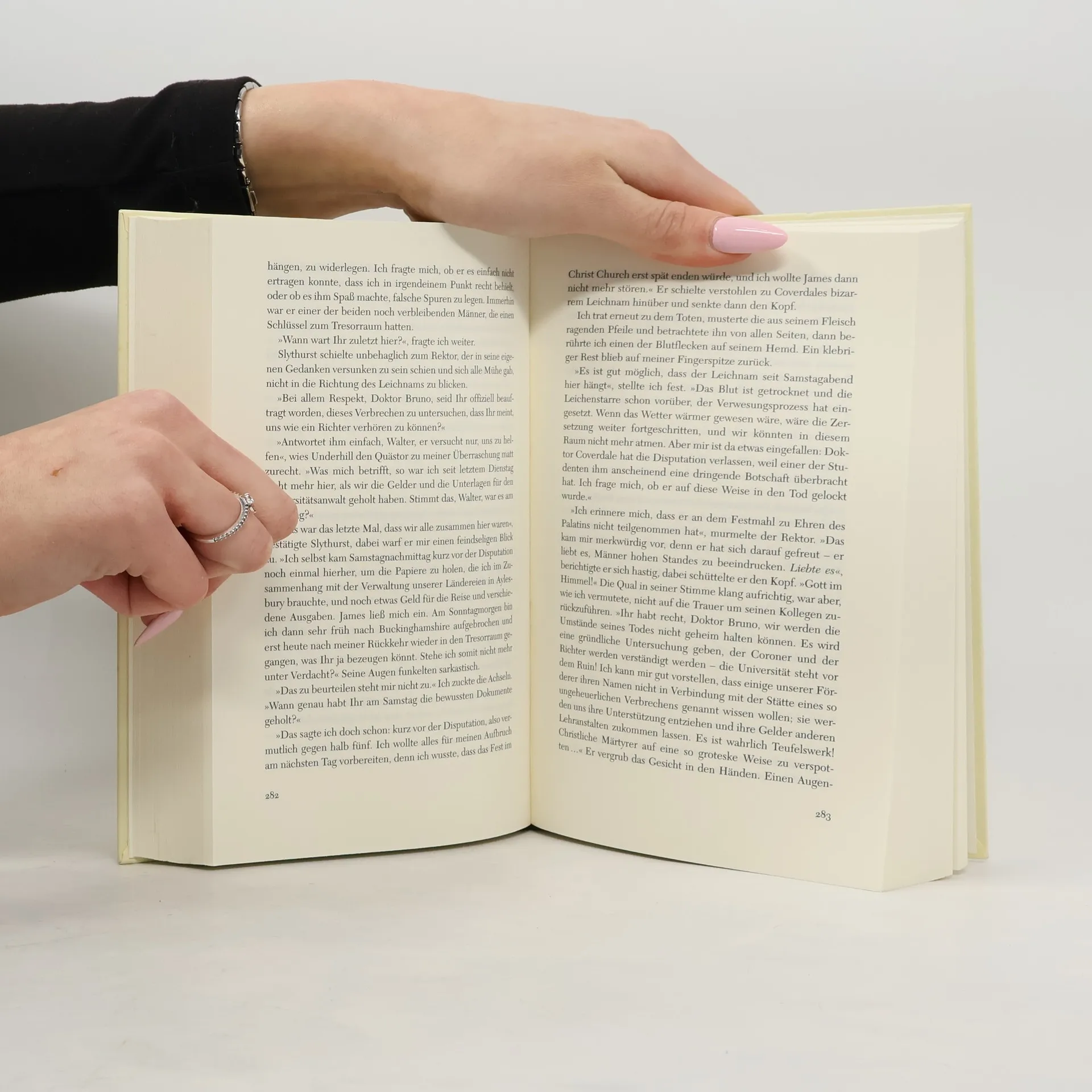 Ewig sollst du leiden für deine Sünden. Giordano Bruno, als Ketzer auf der Flucht durch halb Europa, gerät in die erbarmungslosen Auseinandersetzungen zwischen englischer Staatsmacht und zu allem entschlossenen papsttreuen Fanatikern. Auf der Flucht vor der Inquisition kommt Giordano Bruno nach Oxford. An seinem ersten Morgen im Lincoln College wird er von einem wild bellenden Hund und den entsetzlichen Schmerzensschreien eines Mannes geweckt. Das Tier wurde auf das Opfer gehetzt, doch der Rektor schweigt. Als ein weiterer Geistlicher, der dem katholischen Glauben abgeschworen hatte, brutal ermordet wird, fürchtet Bruno, dass er der Nächste sein könnte, denn der Mörder scheint es auf Glaubensverräter abgesehen zu haben. Holt Bruno die Vergangenheit, vor der er geflohen ist, wieder ein? Und welche Rolle spielt dabei die geheimnisvolle Tochter des Rektors, die sich verdächtig für Alchemie interessiert und für die der Mönch verbotene Gefühle hegt? Der streitbare Freigeist Giordano Bruno begibt sich auf den gefährlichen schmalen Grat zwischen Glauben und Ketzerei.