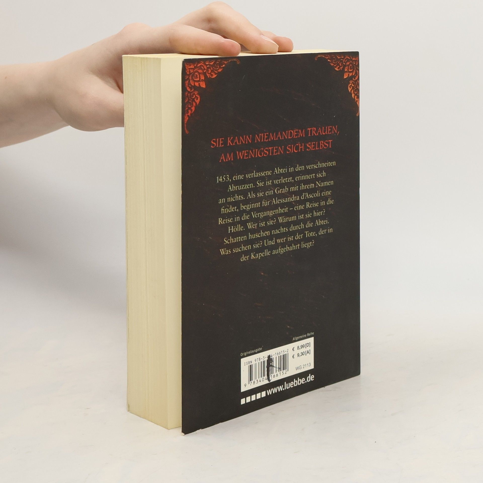 1453, eine verlassene Abtei in den verschneiten Abruzzen. Sie ist verletzt, erinnert sich an nichts. Nicht einmal an den Menschen, der ihr am nächsten stehen sollte: ihren Ehemann, der sich liebevoll um sie bemüht. Doch Alessandra traut ihm nicht, läuft vor ihm davon. Als sie auf ein Grab mit ihrem Namen stößt, beginnt für sie eine Reise in die Vergangenheit - eine Reise in die Hölle. Wer ist sie? Warum ist sie hier? Schatten huschen nachts durch die Abtei. Was suchen sie? Und wer ist der Tote, der in der Kapelle aufgebahrt liegt?