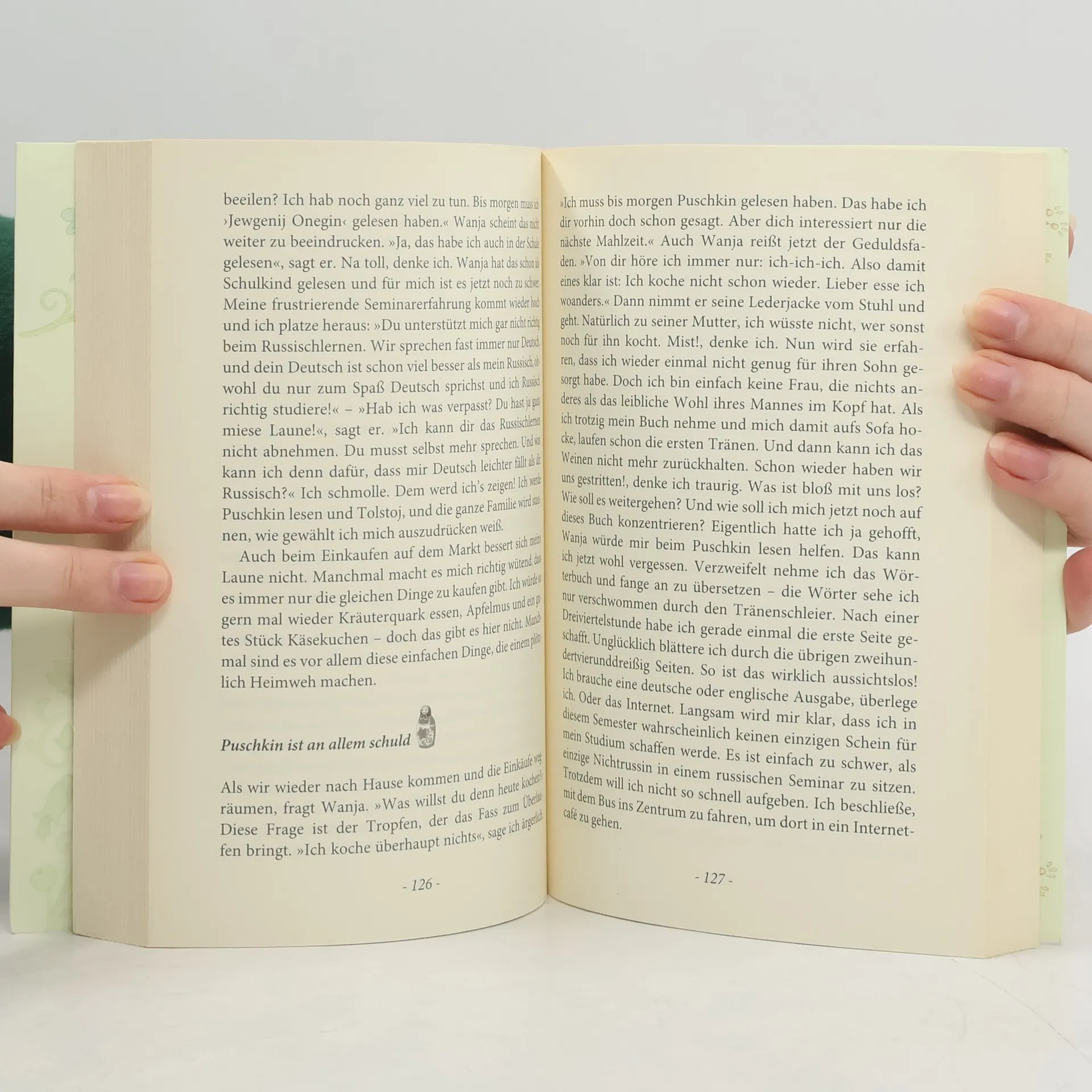 „Ein russischer Seemann? Muss das sein?“ Julianes Eltern sind entsetzt, als sie von ihrer neuen Liebe Wanja erzählt. „Der hat wahrscheinlich in jedem Hafen eine - und trinkt ständig Wodka ...“ Auch ihre Schwiegereltern sind skeptisch, schließlich wissen alle Russen, dass deutsche Frauen im Haushalt keinen Finger rühren und vor allem nicht kochen können. Trotzdem werden die beiden ein Paar, und so kommt es, dass Juliane Wanjas Mutter vorkochen muss. Ihre neuen Freunde wundern sich über ihre unelegante, dafür wärmende Partykleidung, und Juliane staunt über den russischen Körperkult. Eine deutsch-russische Liebe mit Hindernissen und Happy End.