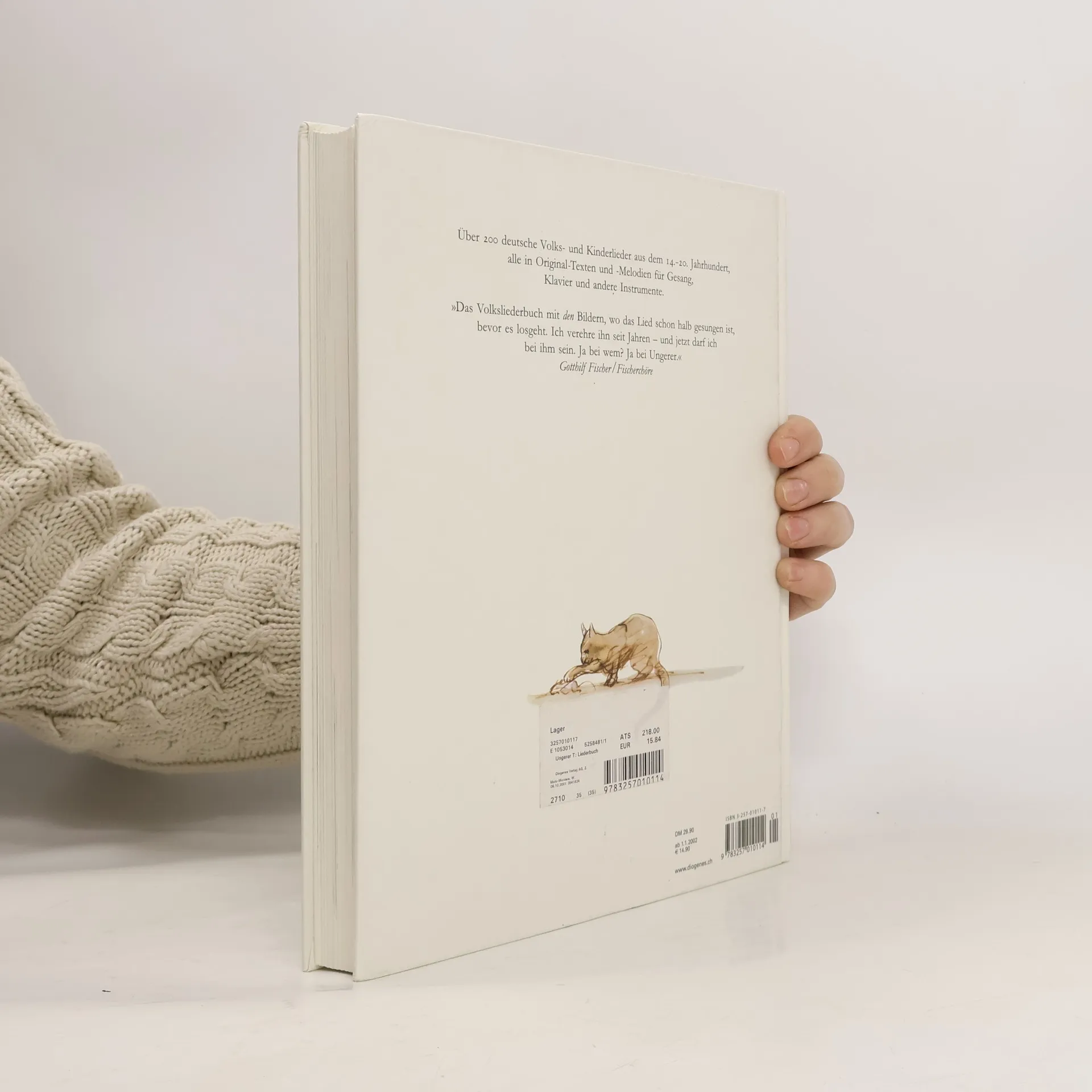 Über 200 deutsche Volks- und Kinderlieder aus dem 14. bis 20. Jahrhundert, gesammelt von Anne Diekmann unter Mitarbeit von Willi Gohl. Alle im Originaltext und in der Originalmelodie. Illustriert mit über 150 Bildern von Tomi Ungerer.