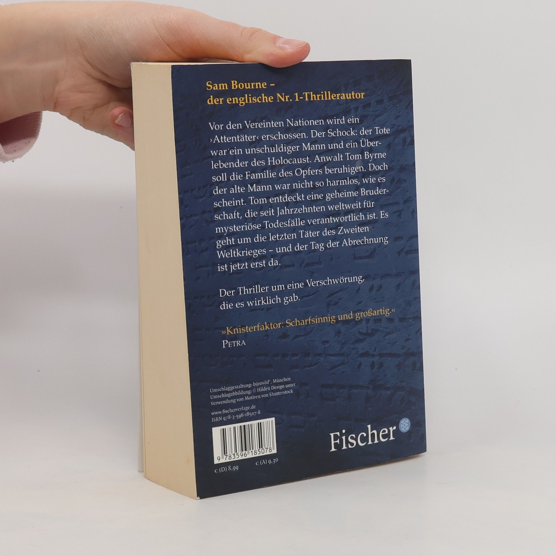 Der englische Nr.1-Thriller von Sam Bourne: Vor dem UN-Gebäude wird ein ›Attentäter‹ erschossen. Dann der Schock: der Tote war ein unschuldiger Mann und ein Überlebender des Holocaust. Der Anwalt Tom Byrne soll die Familie des Opfers beruhigen. Doch der alte Mann war nicht so harmlos, wie es scheint. Tom entdeckt eine geheime Bruderschaft, die seit über sechzig Jahren weltweit für mysteriöse Todesfälle verantwortlich ist. Es geht um die letzten Täter des Zweiten Weltkrieges – und der Tag der Abrechnung ist jetzt erst da.