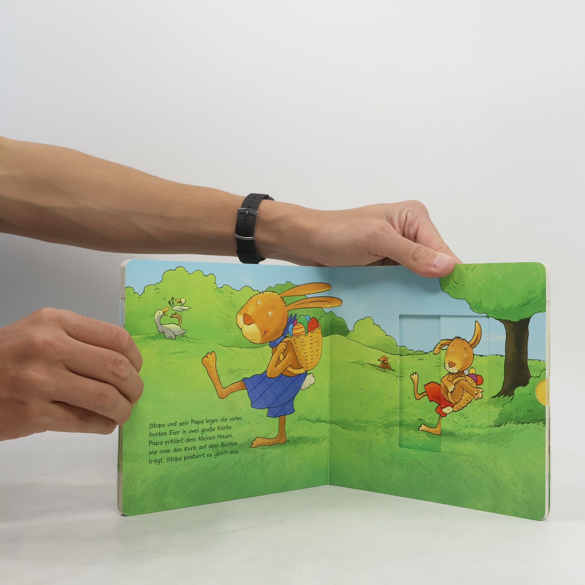Der kleine Hase darf zum ersten Mal bei den Ostervorbereitungen mithelfen. Doch dabei geht noch einiges schief. Lustige Verwandlungsschieber zeigen die Missgeschicke des kleinen Osterhasen.