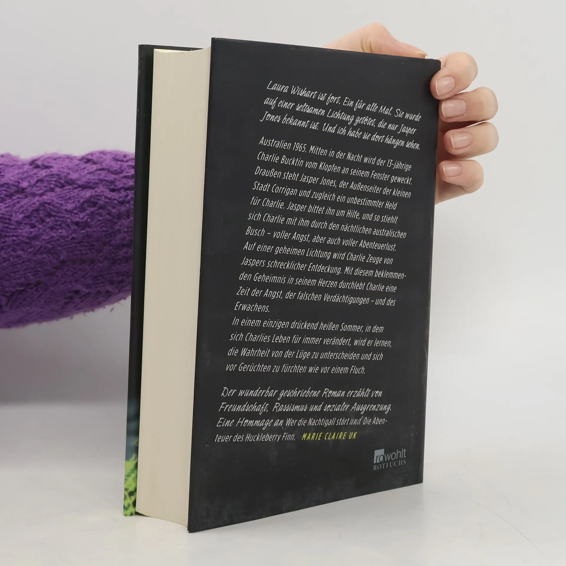Laura Wishart ist fort. Ein für alle Mal. Sie wurde auf einer seltsamen Lichtung getötet, die nur Jasper Jones bekannt ist. Und ich habe sie dort hängen sehen. Australien 1965. Mitten in der Nacht wird der 13-jährige Charlie Bucktin vom Klopfen an seinem Fenster geweckt. Draußen steht Jasper Jones, der Außenseiter der kleinen Stadt Corrigan und zugleich ein unbestimmter Held für Charlie. Jasper bittet ihn um Hilfe, und so stiehlt sich Charlie mit ihm durch den nächtlichen australischen Busch – voller Angst, aber auch voller Abenteuerlust. Auf einer geheimen Lichtung wird Charlie Zeuge von Jaspers schrecklicher Entdeckung. Mit diesem beklemmenden Geheimnis in seinem Herzen durchlebt Charlie eine Zeit der Angst, der falschen Verdächtigungen – und des Erwachens. In einem einzigen drückend heißen Sommer, in dem sich Charlies Leben für immer verändert, wird er lernen, die Wahrheit von der Lüge zu unterscheiden und sich vor Gerüchten zu fürchten wie vor einem Fluch. Der wunderbar geschriebene Roman erzählt von Freundschaft, Rassismus und sozialer Ausgrenzung. Eine Hommage an Wer die Nachtigall stört und Die Abenteuer des Huckleberry Finn. MARIE CLAIRE UK