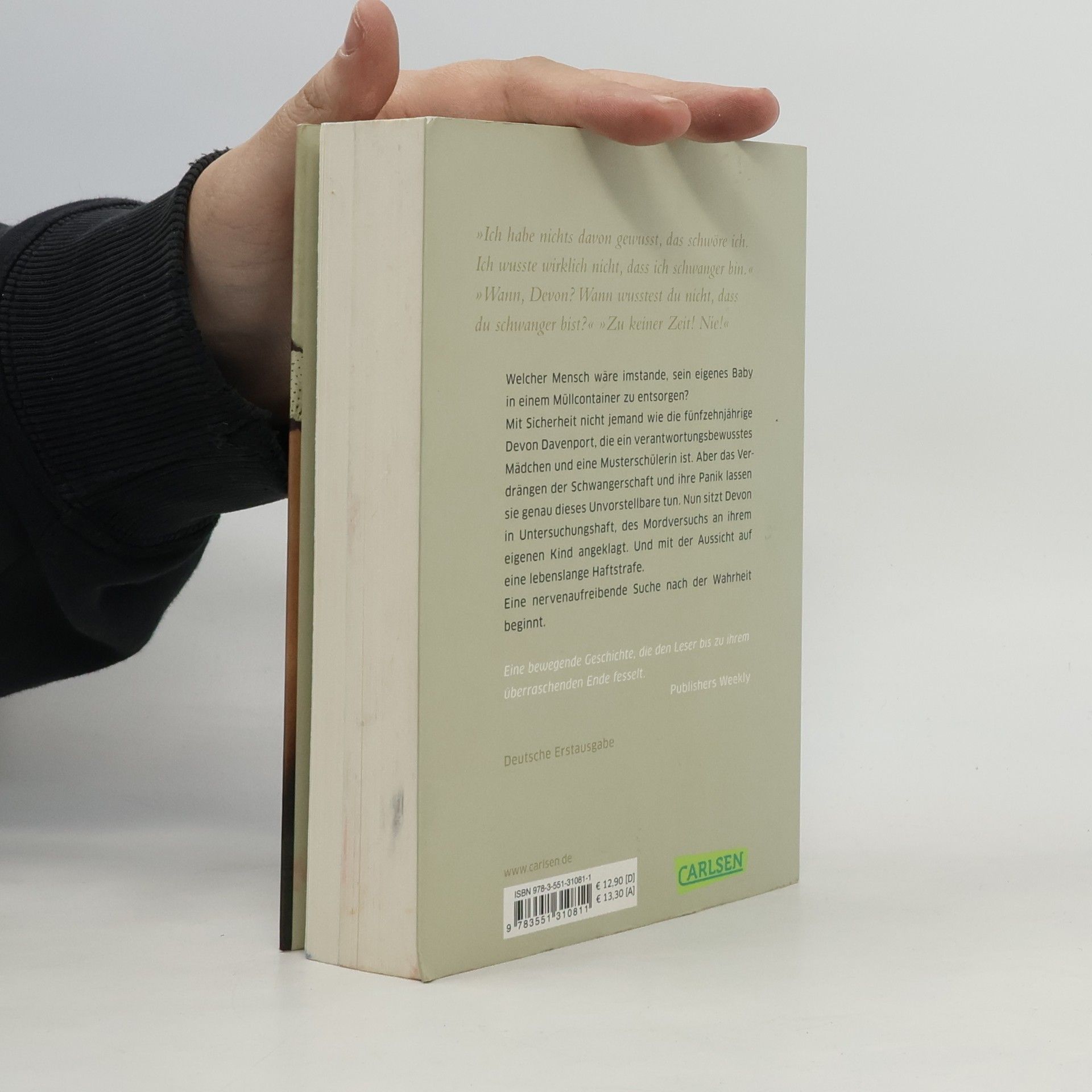 Die 15-jährige Devon ist Musterschülerin, verantwortungsbewusst und ein großes Fußballtalent. Doch jetzt sitzt ausgerechnet sie in Untersuchungshaft, angeklagt des Mordversuchs, der Misshandlung und Aussetzung. Denn das Baby, das in einer Mülltonne hinter dem Haus gefunden wurde, ist ihr Kind. Und niemand glaubt Devon, dass sie von der Geburt völlig überrascht wurde und im Affekt gehandelt hat. Eine mühevolle Suche nach der Wahrheit beginnt. Und dabei steht nicht weniger auf dem Spiel, als Devons Zukunft.