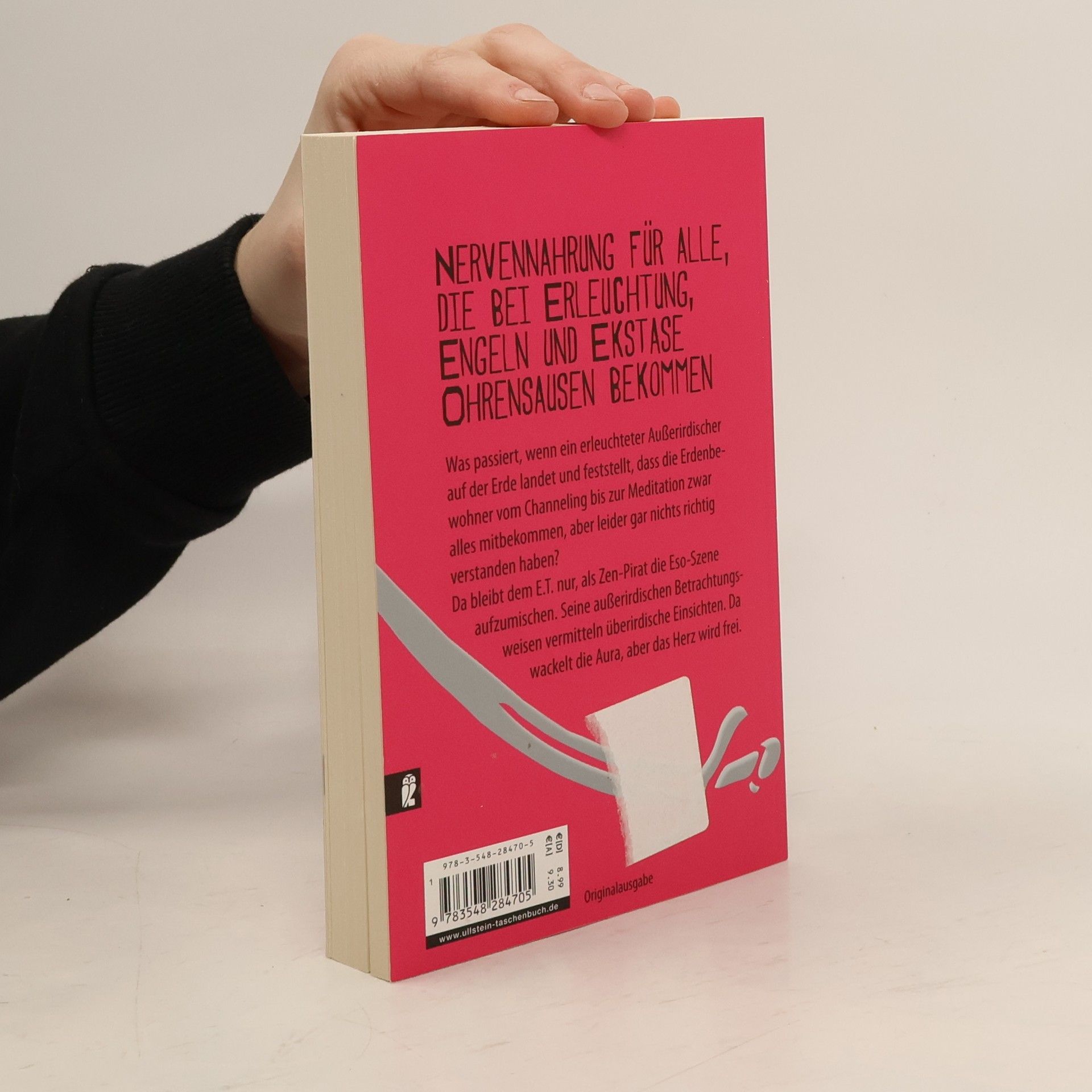 Eine gefundene Nervennahrung für alle, die bei Engeln, Erleuchtung und Ekstase Ohrensausen bekommen… Dieser ungewöhnliche spirituelle Ratgeber erzählt von einem außerirdischen Erleuchteten, der mit seinem Raumschiff auf der Erde landet und feststellt, dass die Menschen von der Erleuchtung, dem Channeling bis hin zu den Wünschen an das Universum zwar alles mitbekommen, aber leider völlig missverstanden haben. Der Zen-Pirat ist für die Eso-Szene, was Douglas Adams Per Anhalter durch die Galaxis für die Science Fiction war. Seine außerirdische Betrachtungweise vermittelt überirdische Einsichten. Da wackelt die Aura, aber das Herz wird frei…