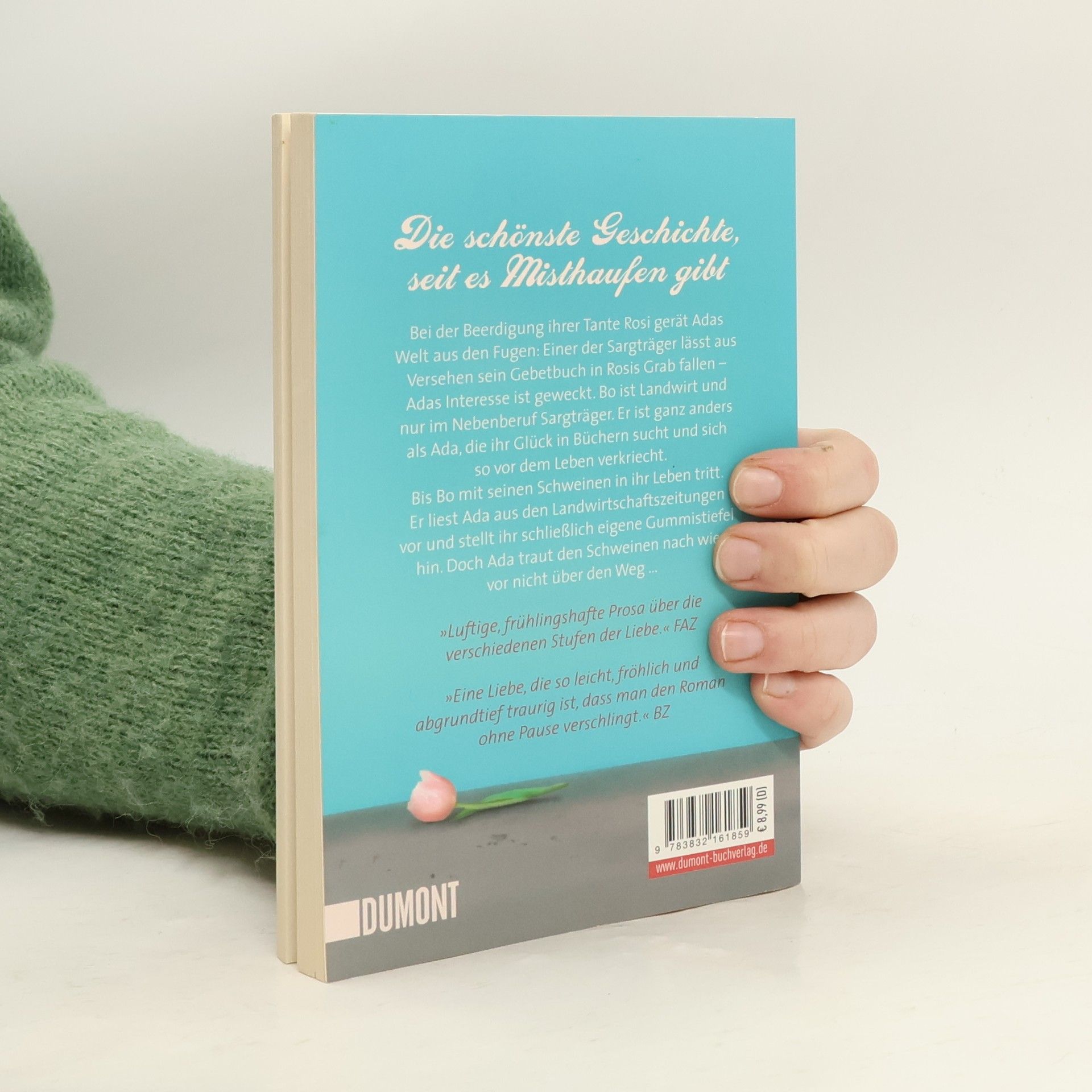 Als ihre Tante Rosi stirbt, gerät Adas Welt aus den Fugen. Aber nicht so sehr wegen der Trauer um die schrullige Tante. Vielmehr weckt einer der Sargträger Adas Interesse, als er aus Versehen sein Gebetbuch in Rosis Grab fallen lässt. Bo ist Landwirt und nur im Nebenberuf Sargträger. Er ist ganz anders als die verschlossene Ada. Ada sucht ihr Glück in Büchern und auf Friedhöfen und verkriecht sich so vor dem Leben. Bis Bo mit seinen Kühen und Schweinen auftaucht. Er liest Ada aus den Landwirtschaftsmagazinen vor und stellt ihr schließlich eigene Gummistiefel hin. Doch nicht nur Adas Vater, dem die Leitsau Siegfried und überhaupt die ganzen Schweine suspekt sind, traut der Beziehung nicht richtig über den Weg. Mit Ada und Bo hat Nicole Balschun zwei Figuren geschaffen, die ungleicher nicht sein könnten, denen man aber am liebsten zurufen würde: Ja, ihr seid genau richtig für einander! Ein so komischer wie anrührender Roman darüber, wie schwierig es sein kann, sich jemandem über alle Grenzen und Hindernisse hinweg zu öffnen.