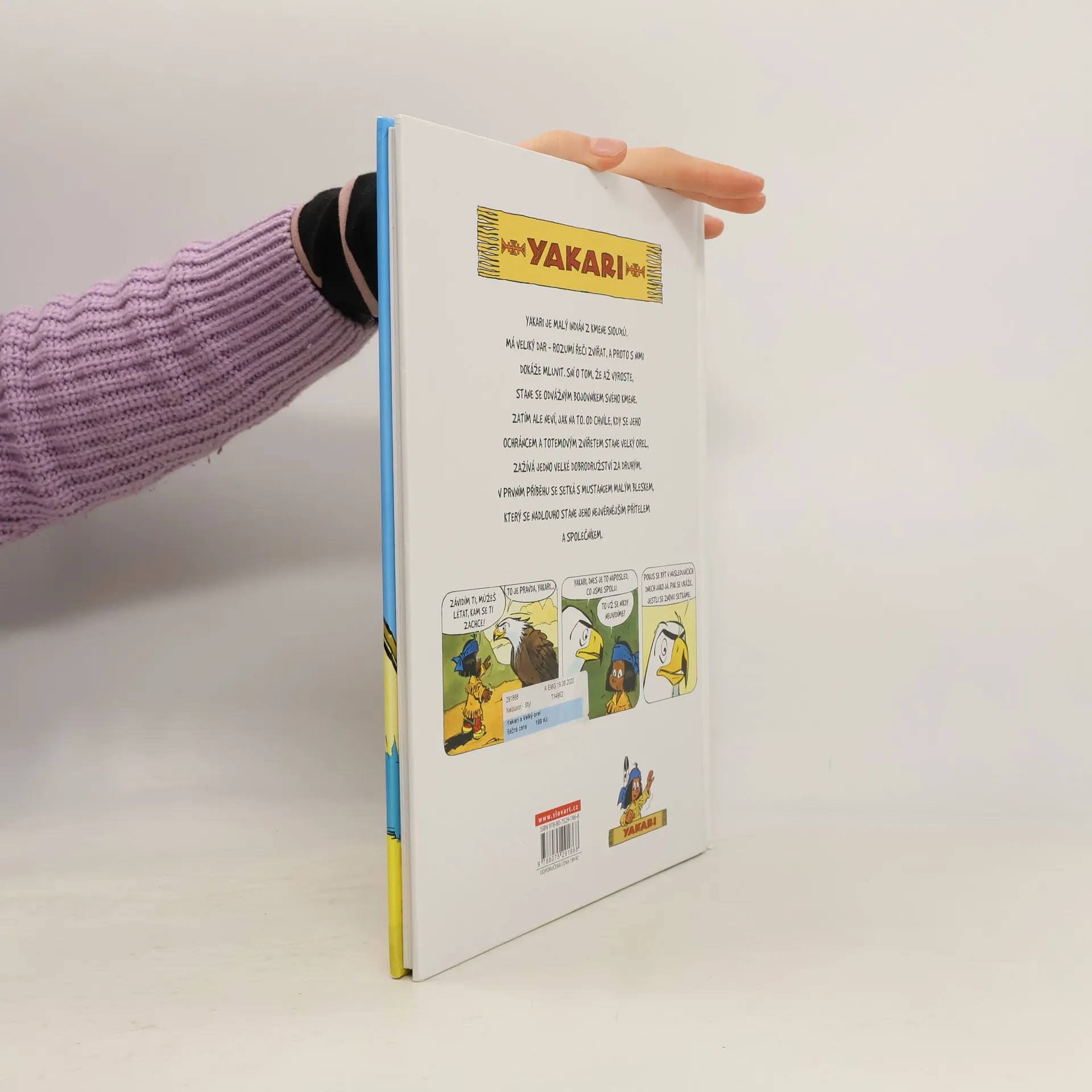 Yakari je indiánský chlapec, kterému se zdají neobyčejné sny, ve kterých se většinou setkává s Velkým orlem, svým totemovým zvířetem. Ten mu doporučí chovat se tak, aby se mu co nejvíc podobal. Yakari proto jde a napodobuje orla; dělá to však příliš doslova (například se pokouší létat), takže jeho snaha někdy nedopadne podle představ. Se svým přítelem Bizoním zrnkem se vydají pozorovat lovce při lovu mustangů. Yakari při té příležitosti zachrání Malého bleska, nepolapitelného a nezkrotného mustanga, a Velký orel mu za tento čin věnuje orlí pero. V táboře však Yakarimu nikdo nechce věřit, jak se k peru dostal, a jeho otec mu ho odebere. Yakari si pero nakonec po mnoha dobrodružstvích vyslouží. Dalším velkým ziskem ze všech těch peripetií je také přátelství Malého bleska, díky kterému Yakari objeví další svůj zvláštní dar: dokáže rozmlouvat se zvířaty.