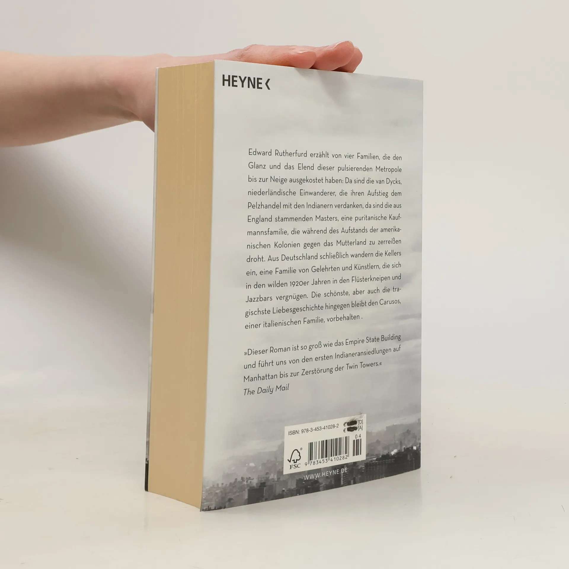 Lesen wie im Fieber: die Geschichte New Yorks als unglaubliches Romanepos Rutherfurd erzählt die Schicksale von vier Familien – einer holländischen, deutschen, britischen und einer italienischen –, in denen sich die ganze Geschichte der aufregendsten Metropole der Welt widerspiegelt: von den Anfängen im 17. Jahrhundert, als in »Neu- Amsterdam« Pelz und Branntwein gehandelt wurde, über die Freiheitsbestrebungen und den Bürgerkrieg bis zu den großen Finanzcrashs des 20. Jahrhunderts. Ein großes Epos voller Liebe und Abenteuer und aufregender Porträts historischer Persönlichkeiten.Rutherfurds farbenprächtiges Familienepos zeichnet die Geschichte New Yorks von seiner Gründung bis in unsere Zeit nach. Zahlreiche historische Persönlichkeiten wie George Washington, Abraham Lincoln, Theodore Roosevelt oder der legendäre Bankier und Großunternehmer J. P. Morgan werden dem Leser in Nahaufnahme porträtiert. Und immer wieder wird deutlich, wie sehr auch deutsche Einwanderer – der aufsässige Gouverneur Johann Jakob Leisler, der unbeugsame Drucker J. P. Zengen oder der Multimillionär Johann Jakob Astor – die Geschichte dieser faszinierenden Stadt prägten.