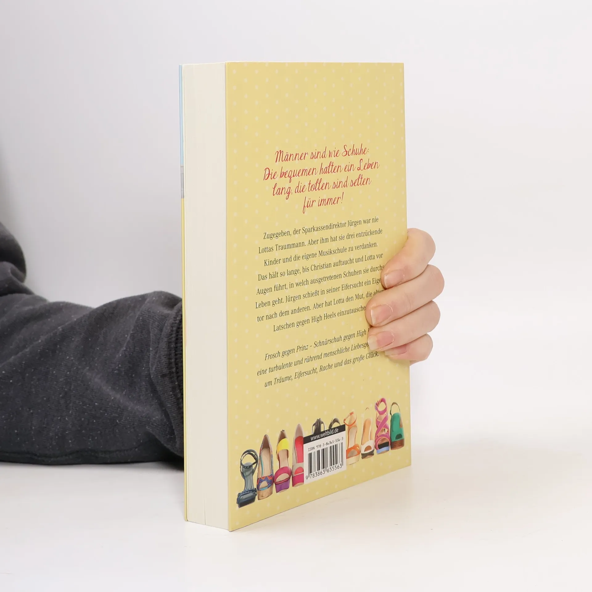 Männer sind wie Schuhe: Die „bequemen” halten ein Leben lang — die „tollen” meist nur kurz Zugegeben, der Sparkassendirektor Jürgen war nie Lottes Traummann. Aber ihm hat sie drei Kinder und die eigene Musikschule zu verdanken. Das hält so lange, bis der Flötist Christian auftaucht und Lotte vor Augen führt, in welch ausgetretenen Schuhen sie durchs Leben geht. Jürgen schießt in seiner Eifersucht ein Eigentor nach dem anderen. Aber hat Lotte den Mut, die alten Latschen gegen die High Heels einzutauschen? Lotta verdankt ihrem Jürgen nicht nur drei wonnige Kinder, sondern auch eine eigene Musikschule, die er als Direktor der städtischen Sparkasse sponsert. Sie hat sich damit arrangiert, dass Jürgen weder besonders toll aussieht noch geistreich ist, dafür aber zuverlässig und treu wie ein solider Schnürschuh. Bis Christian Meran, der Soloflötist der Wiener Philharmoniker, in ihre Kleinstadt flattert wie eine Nachtigall in einen Froschtümpel. Ein sensationelles Konzert und ein verstohlener Kuss im Parkhaus ändern Lottas Leben schlagartig. Eine anonyme E-Mail, eine Reihe von Eigentoren aus Eifersucht und ein paar richtig dumme Zufälle lassen Jürgen alt aussehen. Frosch gegen Prinz, Schnürschuh gegen High Heel — eine turbulente und rührend menschliche Liebesgeschichte um Träume, Eifersucht, Rache und das große Glück.