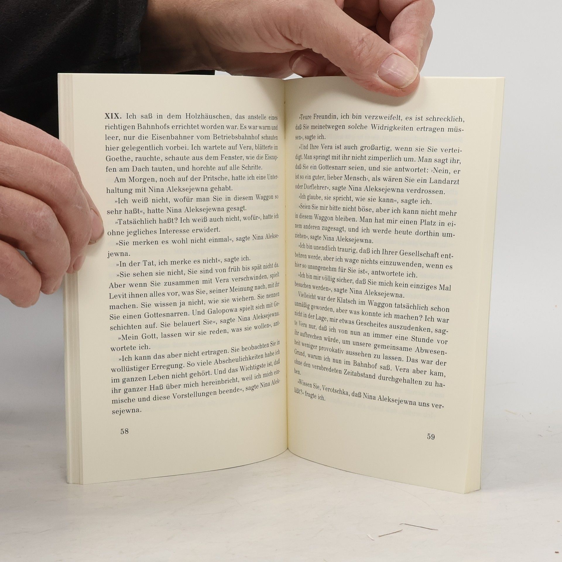 Ein sowjetischer Spitalzug fährt von Front zu Front, und ein Petersburger Intellektueller leidet unter Herzanfällen und Todesangst. Während er Werther auf Deutsch liest, wird seine Lektüre von der Geschäftigkeit der Militärärzte, Apotheker und Krankenschwestern um ihn herum gestört. Diese seltsame Gemeinschaft, durch den Krieg geformt, ist von alltäglichen Sorgen und kleinen Freuden geprägt: „Wir fuhren schon so lange, daß wir nach und nach die Vorstellung von der Zeit verloren hatten. Niemand wußte, wohin wir geschickt wurden.“ Bei einem längeren Aufenthalt begegnet er Vera Muschnikowa, einem unruhigen, romantischen Mädchen, das bereit ist, Liebe zu geben. Der Intellektuelle erliegt ihrem vulgären Zauber und erkennt in ihr seine „sowjetische Manon“, ahnend, dass ihre Liebe einen dunklen Weg einschlagen wird. „Auf der Pritsche liegend, hatte ich mir die Liebe zu dieser sowjetischen Manon Lescaut ausgedacht. Ich hatte Angst davor, mir zu sagen, daß es nicht so war, daß ich mir nichts ausgedacht hatte, sondern tatsächlich alles vergessen und mich selbst verloren hatte und nur davon lebte, daß ich Vera liebte.“ Er positioniert sich so, dass er den gesamten Waggon überblicken kann, immer auf der Suche nach Vera.