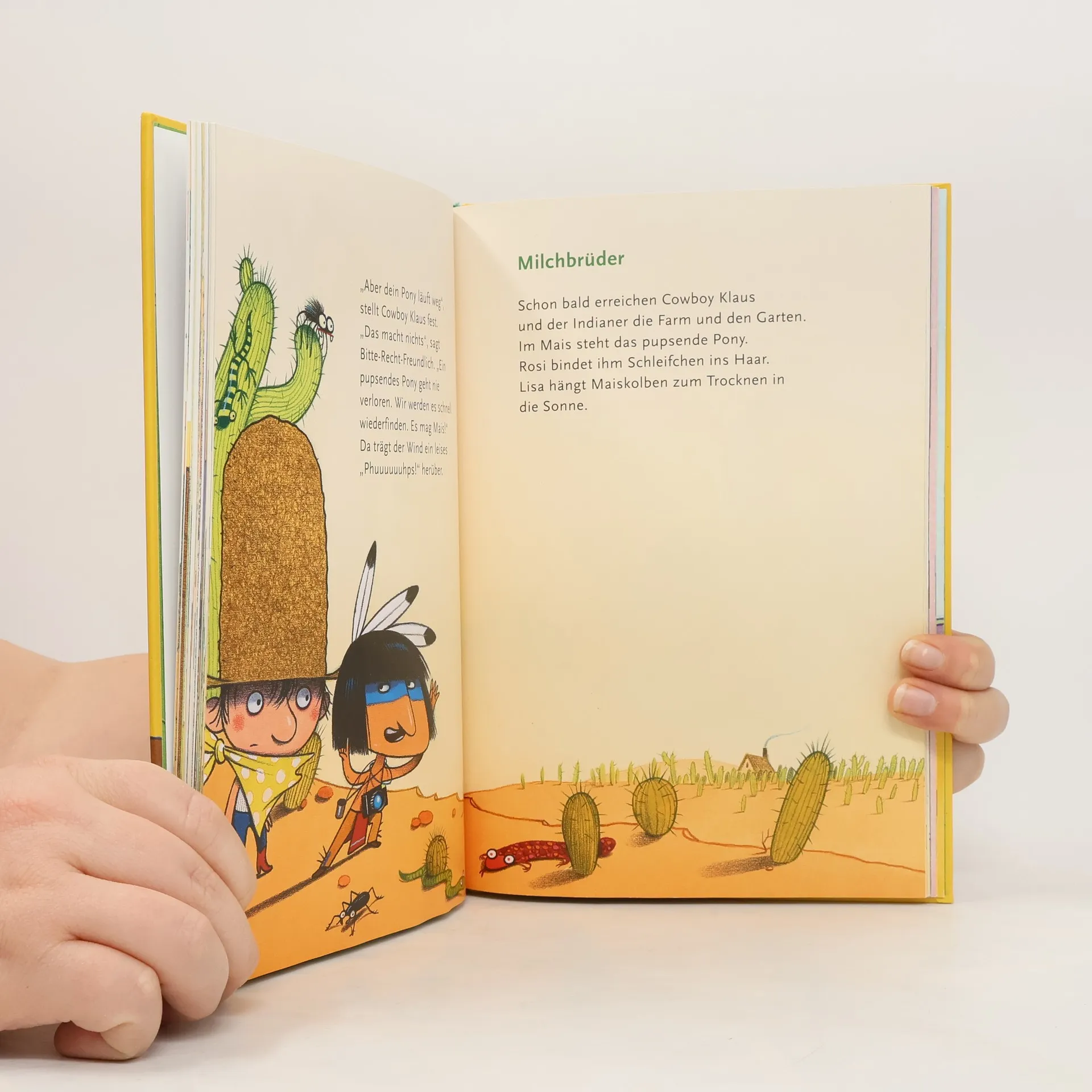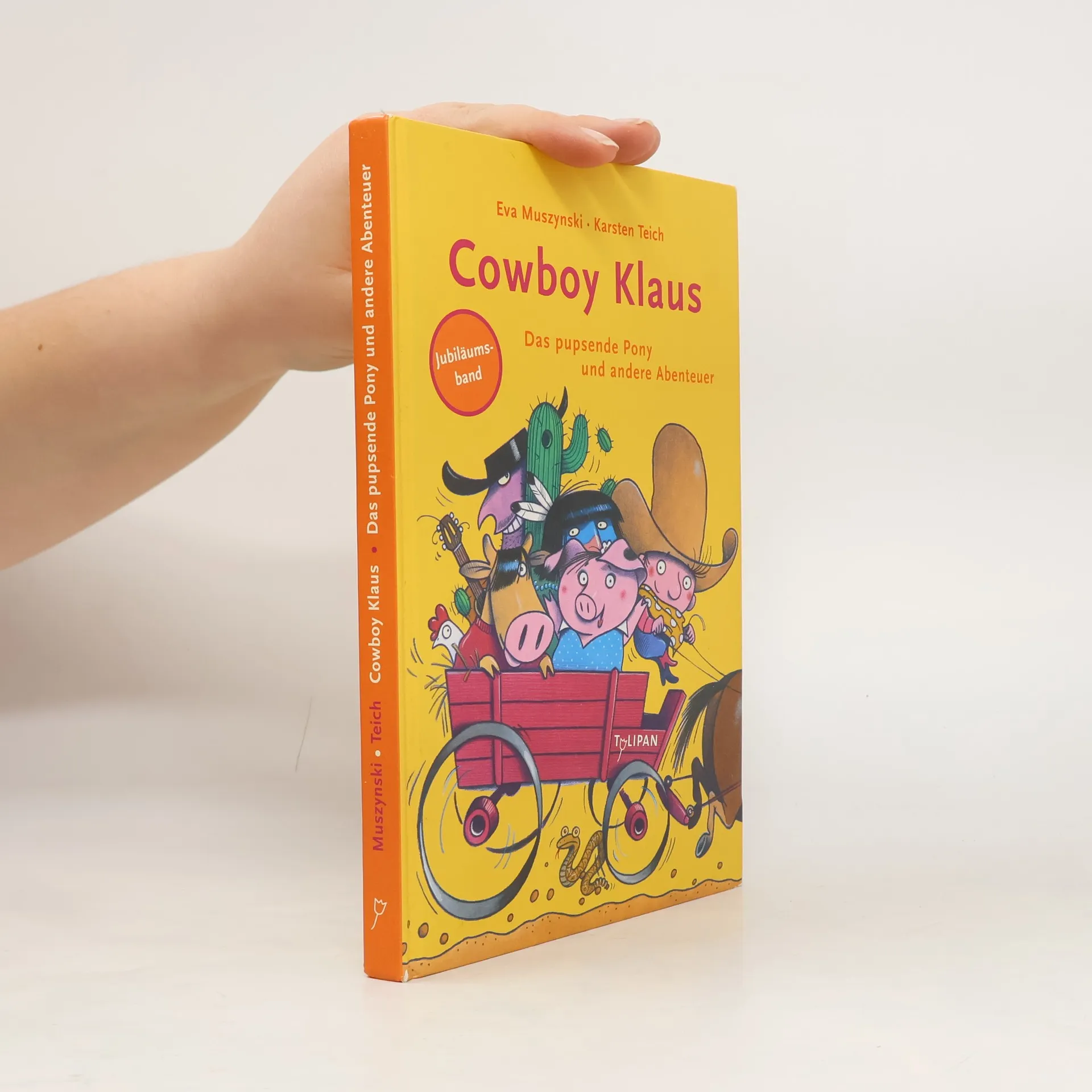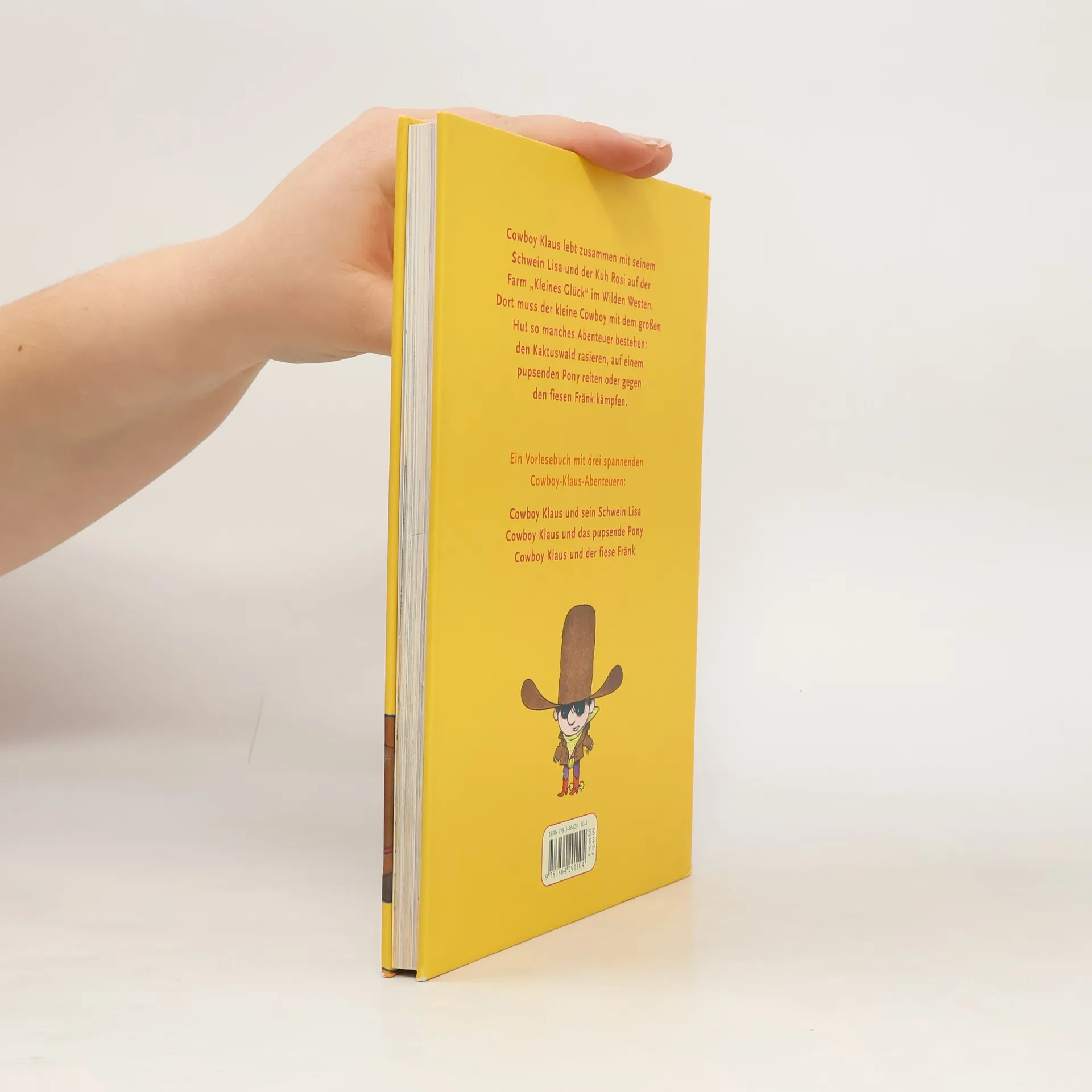 Cowboy Klaus lebt zusammen mit seinem Schwein Lisa und der Kuh Rosi auf der Farm 'Kleines Glück' im Wilden Westen. Dort muss der kleine Cowboy mit dem riesigen Hut so manches Abenteuer bestehen: den Kaktuswald rasieren, auf einem pupsenden Pony reiten oder gegen den fiesen Fränk kämpfen. Ein Vorlesebuch mit drei Abenteuern: Cowboy Klaus und sein Schwein Lisa, Cowboy Klaus und das pupsende Pony, Cowboy Klaus und der fiese Fränk