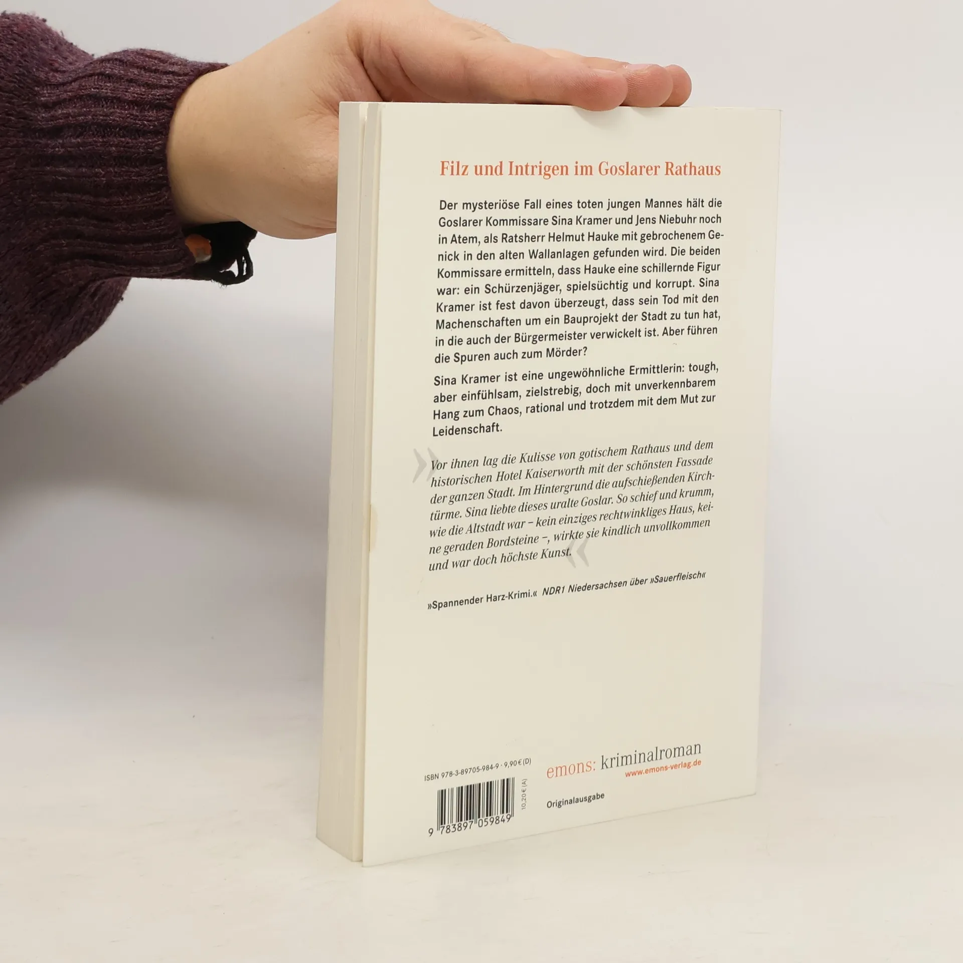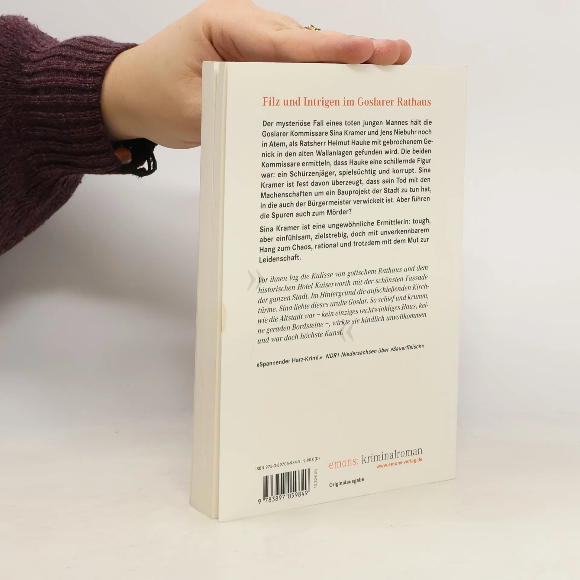 Der mysteriöse Fall eines toten jungen Mannes hält die Goslarer Kommissare Sina Kramer und Jens Niebuhr noch in Atem, als Ratsherr Helmut Hauke mit gebrochenem Genick in den alten Wallanlagen gefunden wird. Die beiden Kommissare ermitteln, dass Hauke eine schillernde Figur war: ein Schürzenjäger, spielsüchtig und korrupt. Sina Kramer ist fest davon überzeugt, dass sein Tod mit den Machenschaften um ein Bauprojekt der Stadt zu tun hat, in die auch der Bürgermeister verwickelt ist. Aber führen die Spuren auch zum Mörder?