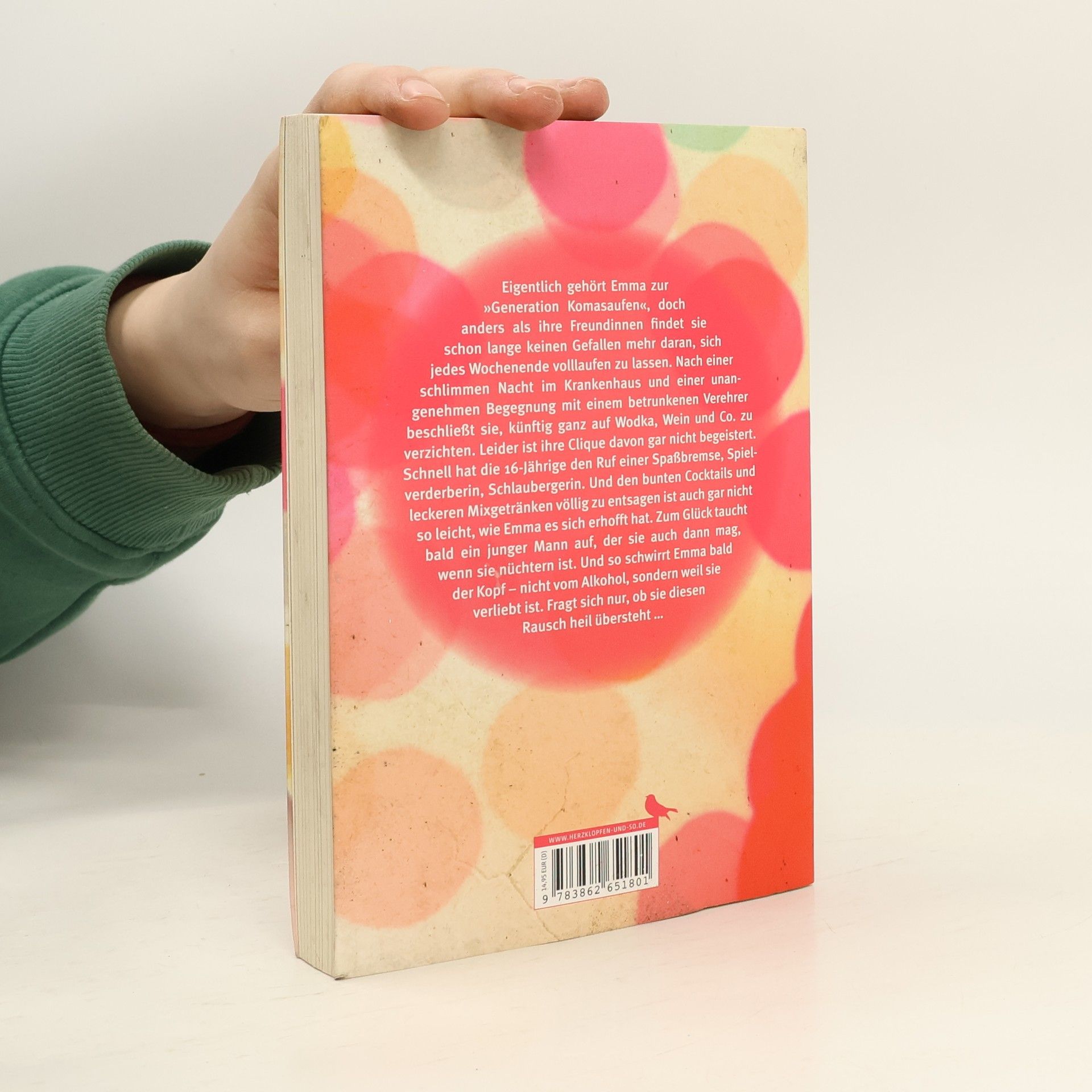 Eigentlich gehört Emma zur »Generation Komasaufen«, doch anders als ihre Freundinnen findet sie schon lange keinen Gefallen mehr daran, sich jedes Wochenende volllaufen zu lassen. Nach einer schlimmen Nacht im Krankenhaus und einer unangenehmen Begegnung mit einem sturzbetrunkenen Verehrer beschließt sie daher, künftig auf Wodka, Wein und Co. zu verzichten. »Lebe lieber alkoholfrei« lautet Emmas neues Motto. Leider ist ihre Clique davon gar nicht begeistert. Schnell hat Emma den Ruf einer Spaßbremse, Spielverderberin, Schlaubergerin. Und den bunten Cocktails und leckeren Mixgetränken gänzlich zu entsagen ist auch gar nicht so leicht, wie es sich die 16-Jährige erhofft hat. Doch zum Glück taucht bald ein junger Mann auf, der Emma auch dann mag, wenn sie nüchtern ist. Und so schwirrt ihr bald der Kopf – nicht weil sie betrunken ist, sondern verliebt. Fragt sich nur, ob sie diesen Rausch heil übersteht …