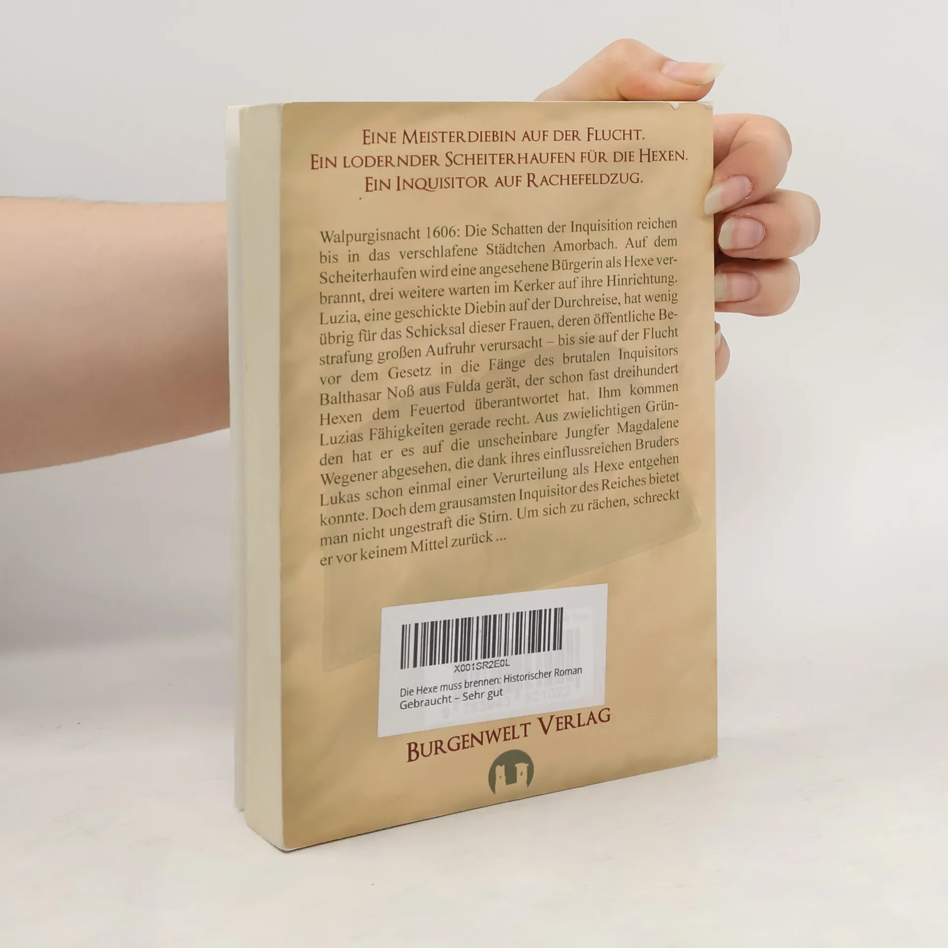 Walpurgisnacht 1606: Die Schatten der Inquisition reichen bis in das verschlafene Städtchen Amorbach. Auf dem Scheiterhaufen wird eine angesehene Bürgerin als Hexe verbrannt, drei weitere warten im Kerker auf ihre Hinrichtung. Luzia, eine geschickte Diebin auf der Durchreise, hat wenig übrig für das Schicksal dieser Frauen, deren öffentliche Bestrafung großen Aufruhr verursacht – bis sie auf der Flucht vor dem Gesetz in die Fänge des brutalen Inquisitors Balthasar Noß aus Fulda gerät, der schon fast dreihundert Hexen dem Feuertod überantwortet hat. Ihm kommen Luzias Fähigkeiten gerade recht. Aus zwielichtigen Gründen hat er es auf die unscheinbare Jungfer Magdalene Wegener abgesehen, die dank ihres einflussreichen Bruders Lukas schon einmal einer Verurteilung als Hexe entgehen konnte. Doch dem grausamsten Inquisitor des Reiches bietet man nicht ungestraft die Stirn. Um sich zu rächen, schreckt er vor keinem Mittel zurück.