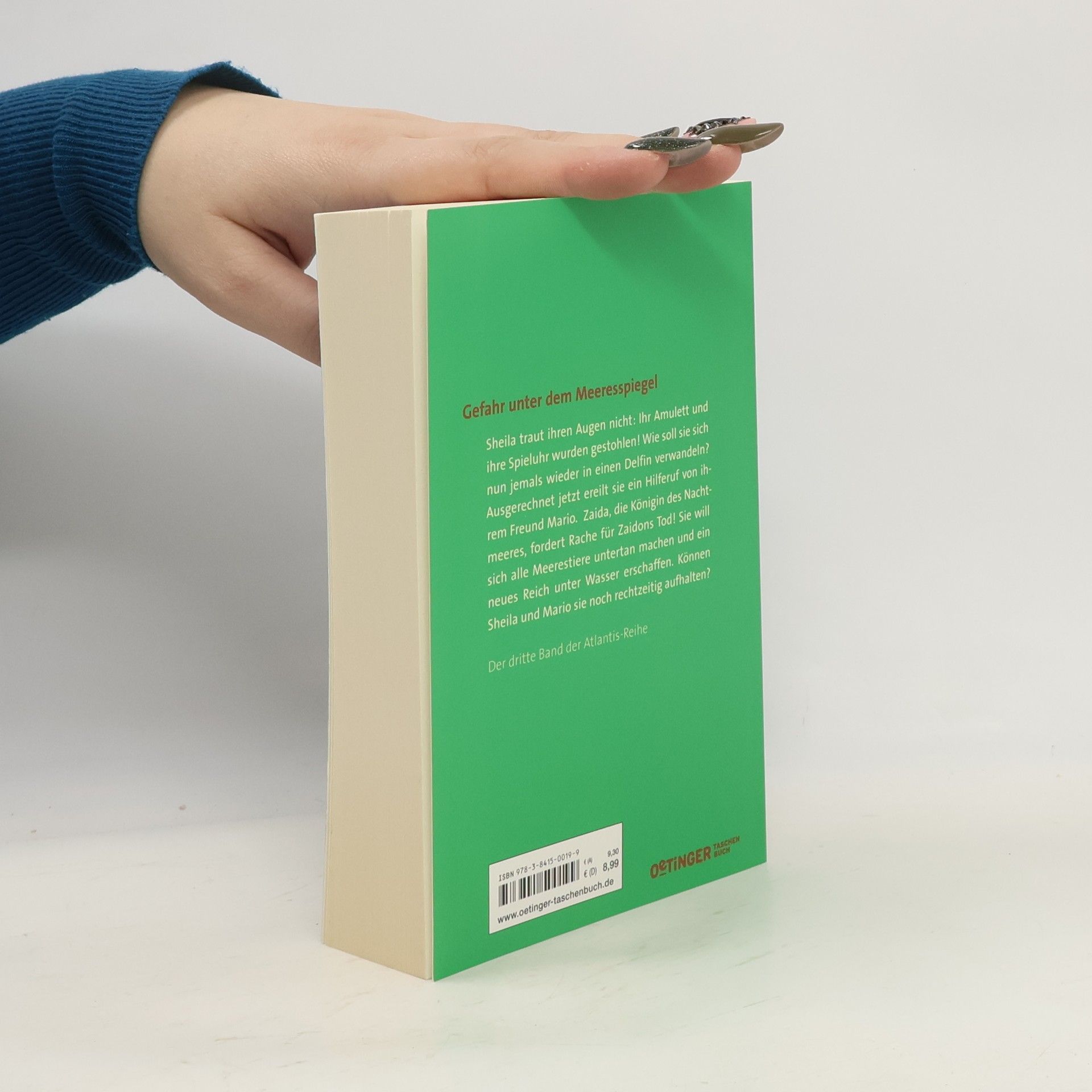 Hütet euch vor der Königin des Nachtmeers! Sheila traut ihren Augen nicht: die Wohnungstür ist aufgebrochen worden und ihr Amulett und die Spieluhr fehlen. Wie soll sie sich jetzt in einen Delfin verwandeln und jemals Mario wiedersehen? Hinter dem Diebstahl steckt Ricardo, Handlanger des bösen Zaidon. Doch diesmal gibt es eine noch stärkere Gegnerin: Zaida, die Königin des Nachtmeeres, will sich alle Meerestiere untertan machen und versucht sogar, Sheila und Mario für ihre Zwecke einzuspannen … Der sehnsüchtig erwartete dritte Band entführt den Leser in eine wunderbare Unterwasserwelt – von der Nordsee bis zum Great Barrier Riff.