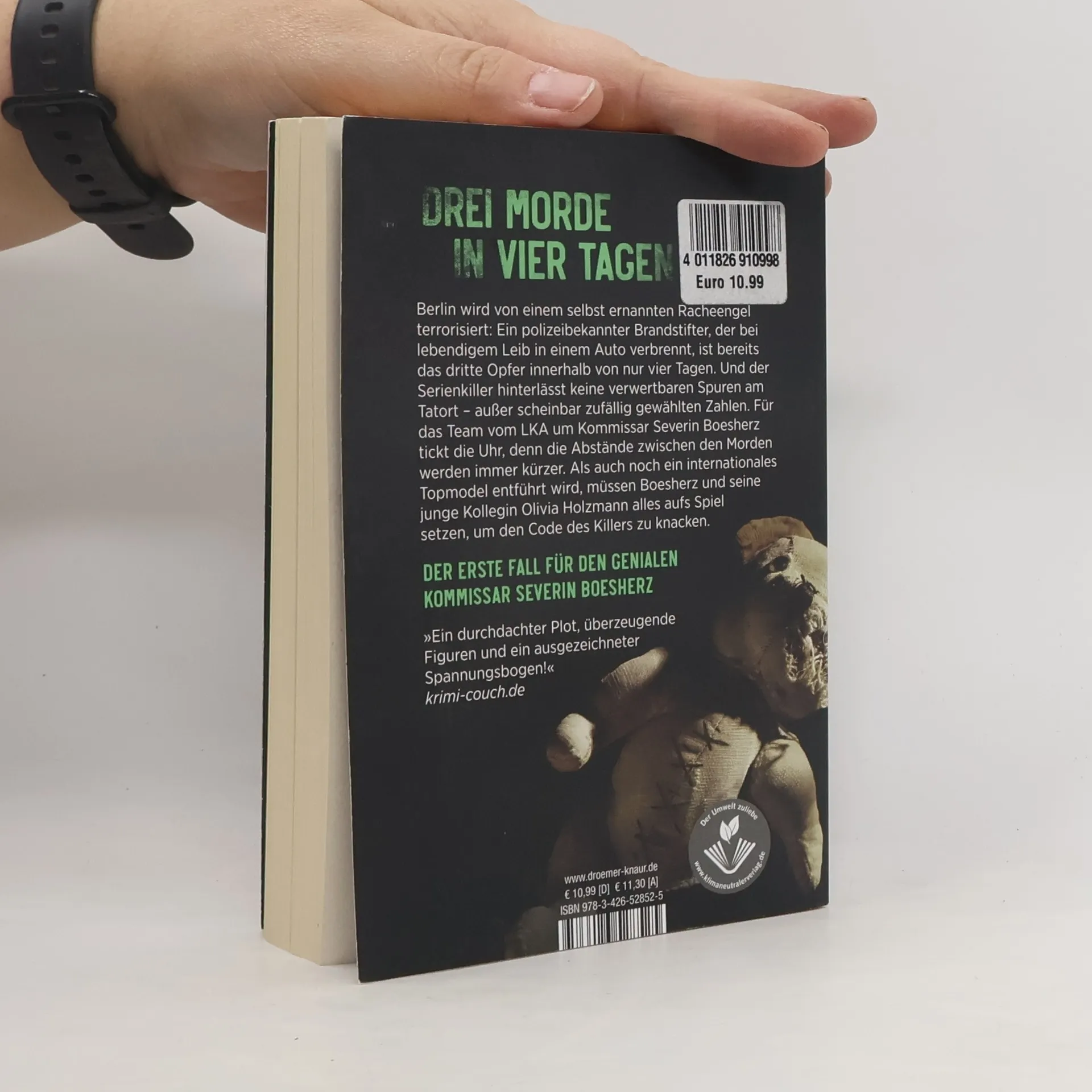 Drei Morde in vier Tagen – Fall 1 für Kommissar Severin Boesherz! »Bis in den Tod hinein« ist der erste harte Thriller mit dem genialen Kommissar Boesherz von Bestseller-Autor Vincent Kliesch. Berlin wird von einem selbsternannten Racheengel terrorisiert: Ein polizeibekannter Brandstifter, der bei lebendigem Leib in einem Auto verbrennt, ist bereits das dritte Opfer innerhalb von nur vier Tagen. Der Serienkiller geht so kreativ wie sorgfältig vor, die Mord-Methode entspricht jeweils dem »Vergehen« seines Opfers, und er hinterlässt keine verwertbaren Spuren am Tatort – außer scheinbar zufällig gewählten Zahlen. Für das Team vom LKA um den neu nach Berlin gezogenen Kommissar Severin Boesherz tickt die Uhr, denn die Abstände zwischen den Morden werden immer kürzer. Als auch noch ein internationales Topmodel entführt wird, müssen Boesherz und seine junge Kollegin Olivia Holzmann alles aufs Spiel setzen, um den Code des Killers zu knacken. Kommissar Severin Boesherz ist der leitende Ermittler in Vincent Klieschs Thrillern »Bis in den Tod hinein« und »Im Augenblick des Todes«. Mit »Im Auge des Zebras« hat der Bestseller-Autor (u. a. »Auris«) eine neue Thriller-Reihe gestartet, in der Boesherz den Staffelstab an Olivia Holzmann als leitende Kommissarin übergibt.