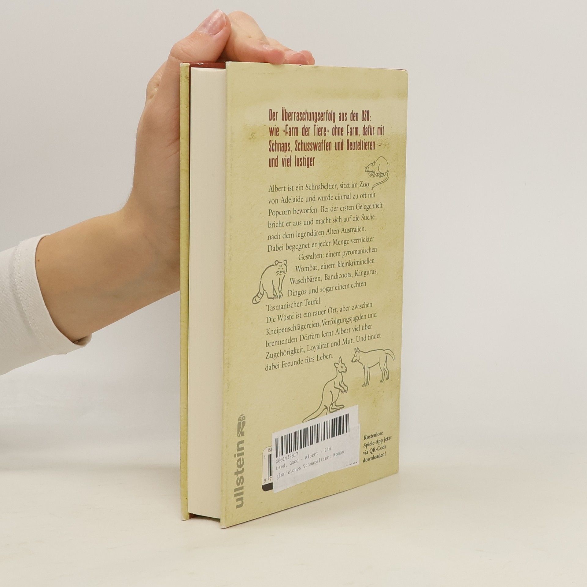 Albert ist ein Schnabeltier, und man hat ihn einmal zu oft mit Popcorn beworfen. Bei der ersten Gelegenheit bricht er aus dem Zoo von Adelaide aus und macht sich auf die Suche nach dem legendären Alten Australien, wo Tiere wie er eine Heimat haben. Auf seiner Reise durch die australische Wüste begegnet er jeder Menge verrückter Gestalten: einem pyromanischen Wombat, einem kleinkriminellen Waschbären, Bandicoots, Kängurus, Dingos und sogar einem echten Tasmanischen Teufel. Die einen werden zu Weggefährten, die anderen wollen ihn lieber am nächsten Baum aufknüpfen. Die Wüste ist ein rauer Ort, aber zwischen Kneipenschlägereien, Verfolgungsjagden und brennenden Dörfern lernt Albert viel über Zugehörigkeit, Loyalität und Mut. Und findet dabei Freunde fürs Leben. Wie \"Farm der Tiere\" ohne Farm, dafür mit Schnaps, Schusswaffen und Beuteltieren - und viel lustiger.