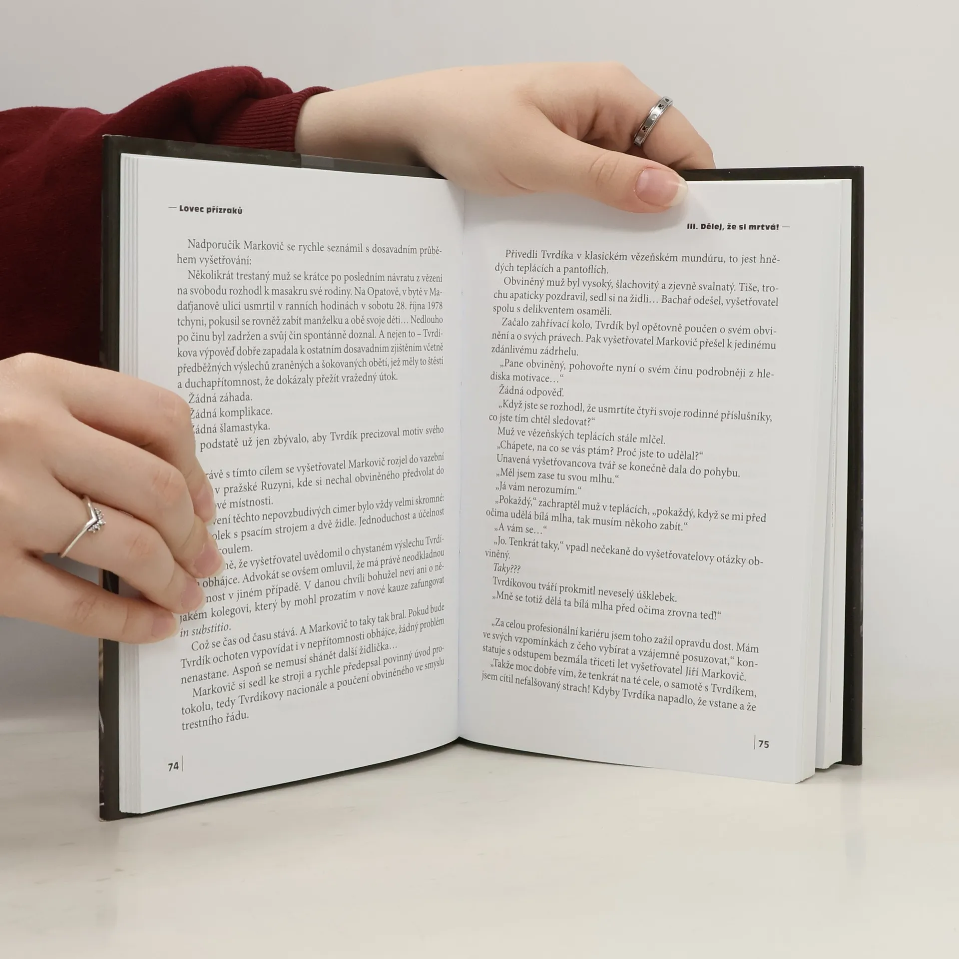 Byly to výjimečné a výjimečně kruté případy. Když kriminalisté poprvé stáli na místech vražd, nad zuboženými těly obětí, připadal jim neznámý pachatel jako vzdálený přízrak. Jako monstrum s nepochopitelným myšlením a ještě zvrácenějším konáním... Jaká byla realita? Profesionální dráha policejního vyšetřovatele a šéfa pražské mordparty Jiřího Markoviče je lemována především sexuálními vraždami. Případ pětinásobného vraha Hojera či kauza tzv. spartakiádního škrtiče Straky vstoupily už na beztak výrazně zkrvavělý piedestal historie české kriminalistiky. Markovič ale také řešil brutální vraždu v hodkovičském lese – ta svého času inspirovala scénáristu Jaroslava Dietla, stejně jako pozměnila učebnicové kánony o předpokládaném pachatelově profilu. Dozvíme se také nelítostnou pravdu o dvojnásobné vraždě v Prokopském údolí. O vraždě v restauraci U dvou koček, jež vyústila v soudní maratón. O psychopatu Vocáskovi, prvním doživotním odsouzenci, který se dnes snaží prodrat na svobodu. Navštívíme místa činu, pitevny, psychiatrická zařízení... Zasvěceným průvodcem nám bude Lovec přízraků.