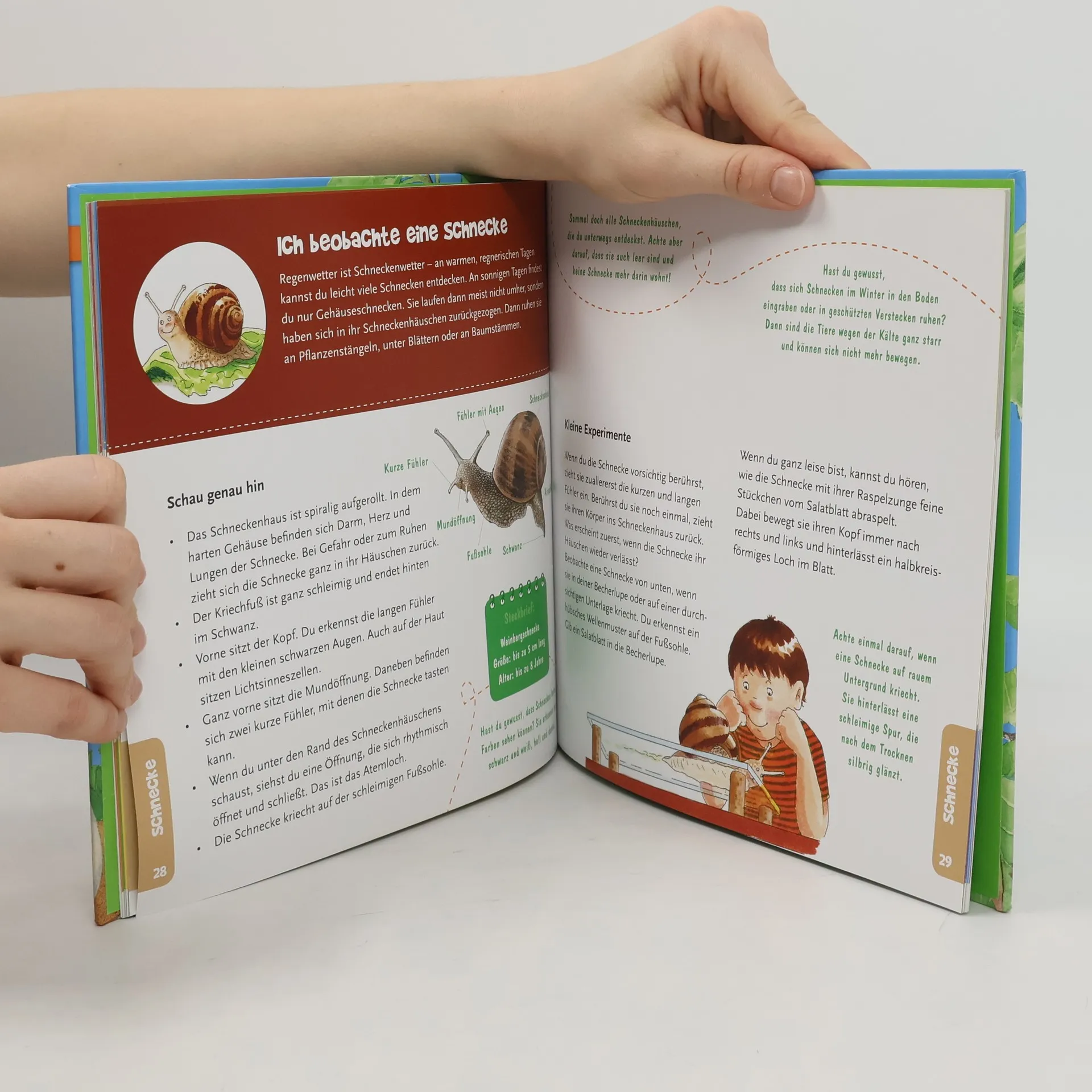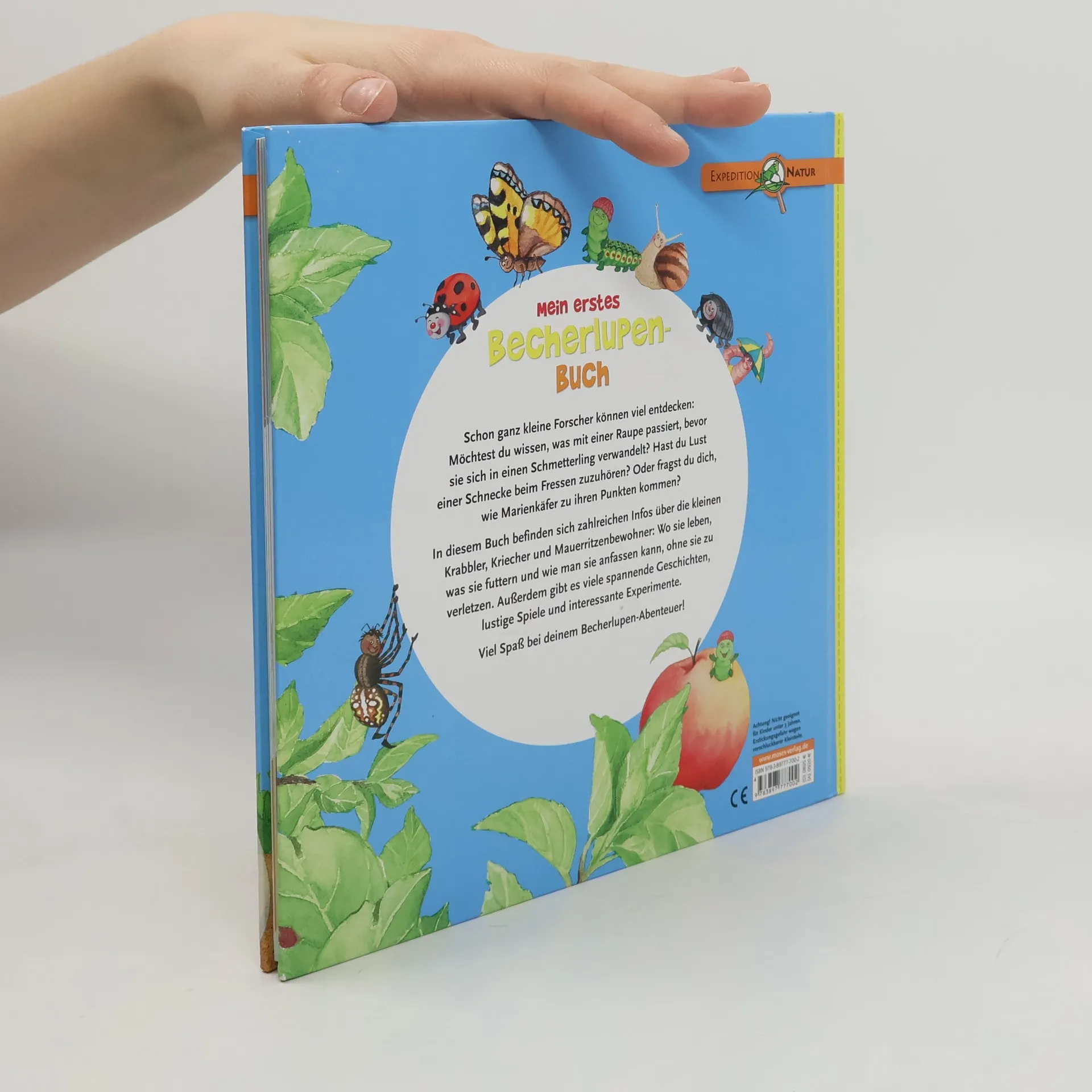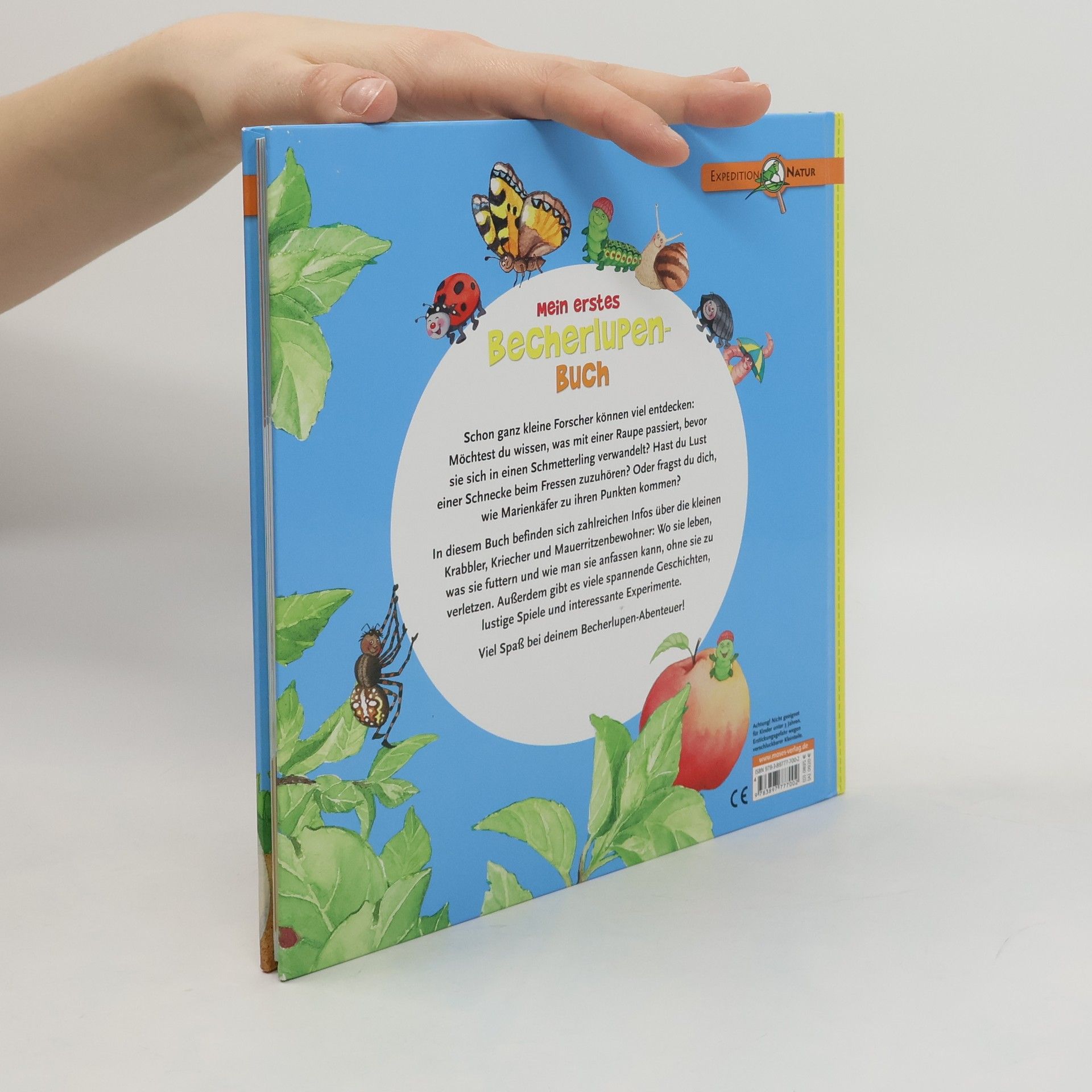 Auch kleine Kinder möchten die Natur erforschen, möchten wissen, was mit einer Raupe passiert, bevor sie sich zum Schmetterling verwandelt, haben Lust eine Schnecke beim Fressen zuzuhören oder möchten sich die Facettenaugen eines Marienkäfers unter der Lupe anschauen. In diesem Becherlupen-Buch finden schon ganz kleine Naturforscher zahlreiche Informationen über die kleinen Krabbler, Kriecher und Mauerritzenbewohner: Wo sie leben, wie man sie anfassen kann, ohne sie zu verletzen und was sie futtern. Außerdem gibt es noch viele spannende Geschichten, lustige Spiele und interessante Experimente rund um die Krabbeltiere.
