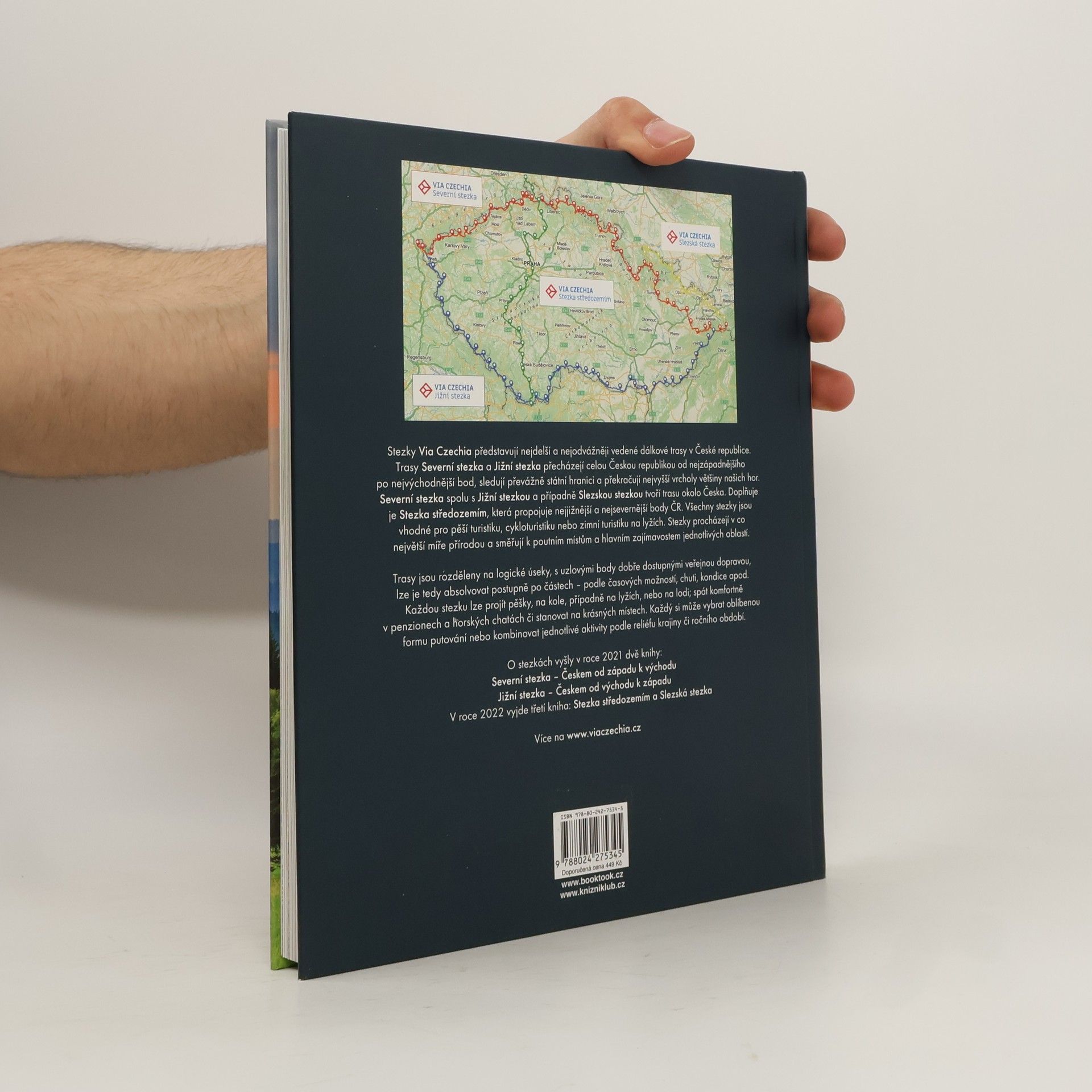 Po Severní stezce se Jan Hocek vydal na jih naší země a dokončil okruh kolem Česka. Jižní stezka spolu se Severní stezkou tak tvoří první ucelenou trasu pro pěší a cyklisty vedoucí kolem České republiky. Jižní stezka vede napříč celou zemí mezi nejzápadnějším a nejvýchodnějším bodem České republiky, prostupuje nádherné česko-slovenské pohraničí, vydává se přes jihomoravské vinohrady a svou pouť končí přechodem Šumavy a Českého lesa. Cestovatel Jan Hocek absolvoval celou trasu, uvědomil si, že 1 000 km není zas tak moc, a vnímal měnící se krajinu, architekturu, nářečí, nabídku jídel nebo třeba i piv. Knihu můžete využít mnoha způsoby – jako obrazovou a informační publikaci z českých, moravských a slezských hor, jako průvodce pro absolvování celé trasy či její části nebo jako motivační a inspirativní dílo. Putování vlastními silami po krajině České republiky nabízí mimo jiné odpovědné a nízkonákladové cestování, ne vždy je totiž nutné létat za poznáním přes půl zeměkoule, největší překvapení často zažijete doslova za humny.