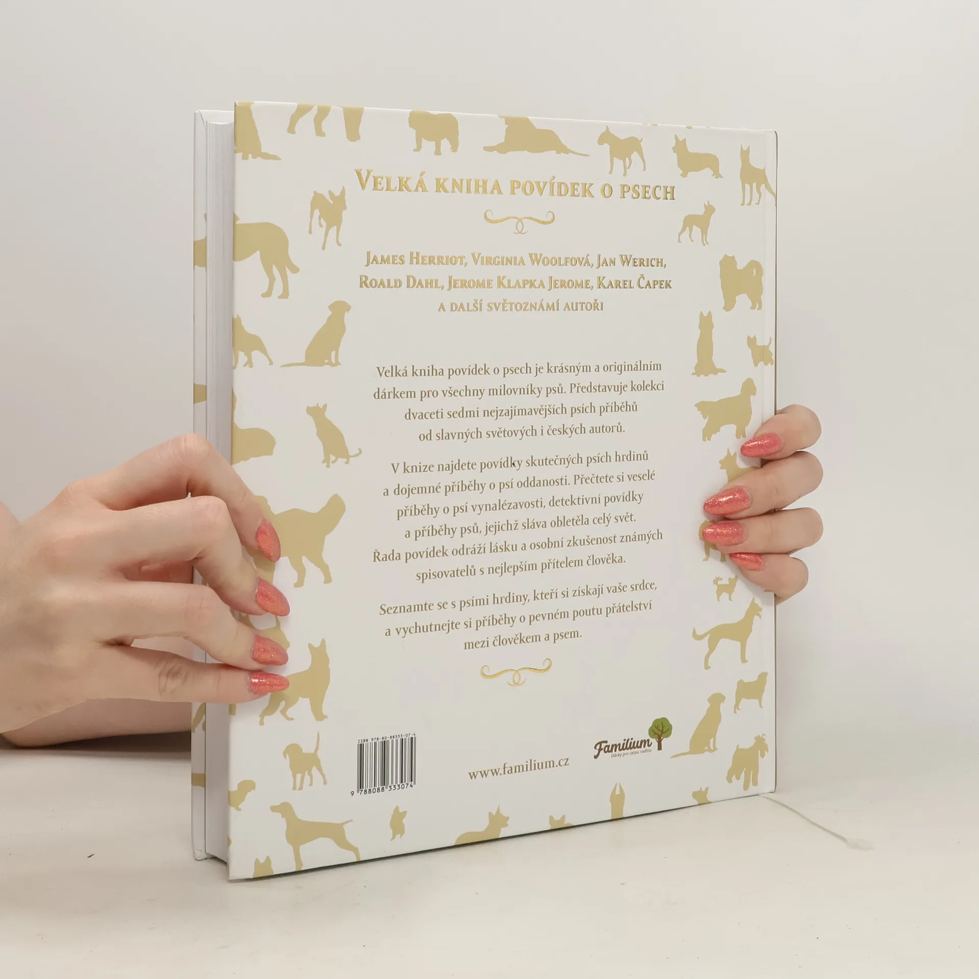 „Velká kniha povídek o psech“ je krásným a originálním dárkem pro všechny milovníky psů. Kniha nabízí kolekci nejzajímavějších psích příběhů od slavných světových i českých autorů. Najdete zde díla Jamese Herriota, Jana Wericha, Roalda Dahla, Virginie Woolfové, Jeroma Klapky Jeroma, Karla Čapka a dalších. Začtěte se do šestadvaceti napínavých, zábavných i dojemných příběhů o psí věrnosti, odvaze, chytrosti a nápaditosti. Řada povídek odráží lásku a osobní zkušenost známých spisovatelů s nejlepším přítelem člověka. „Velká kniha povídek o psech“ představuje výběr těch nejlepších povídek ze světové literatury se psími hrdiny v hlavní roli. Knížka má větší dárkový formát, a navíc obsahuje originální tematické ilustrace, které vytvořila Pavlína Veselá.