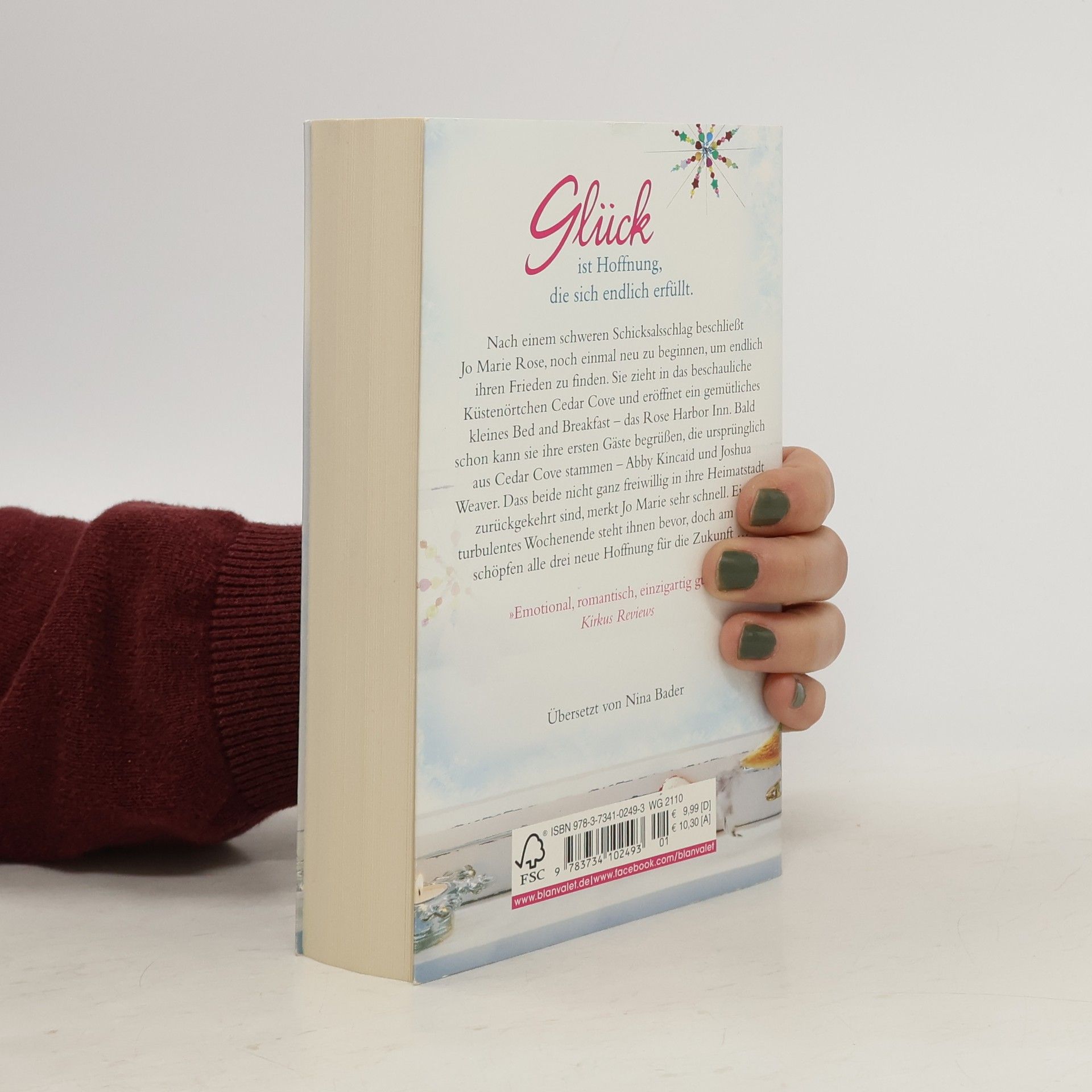 Wer Nora Roberts mag, wird Debbie Macomber lieben! Nach einem schweren Schicksalsschlag beschließt Jo Marie Rose, noch einmal neu zu beginnen um endlich ihren Frieden zu finden. Sie zieht in das beschauliche Küstenörtchen Cedar Cove und eröffnet ein gemütliches kleines Bed and Breakfast – das Rose Harbor Inn. Bald schon kann sie ihre ersten Gäste begrüßen, die beide aus Cedar Cove stammen – Abby Kincaid und Joshua Weaver. Dass beide nicht ganz freiwillig in ihre Heimatstadt zurückkehrten, merkt Jo Marie sehr schnell. Ein turbulentes Wochenende steht ihnen bevor, doch am Ende schöpfen alle drei neue Hoffnung für die Zukunft … Die Rose-Harbor-Reihe: Band 1: WinterglückBand 2: FrühlingsnächteBand 3: SommersterneBand 4: Wolkenküsse (Short Story)Band 5: HerbstleuchtenBand 6: Rosenstunden