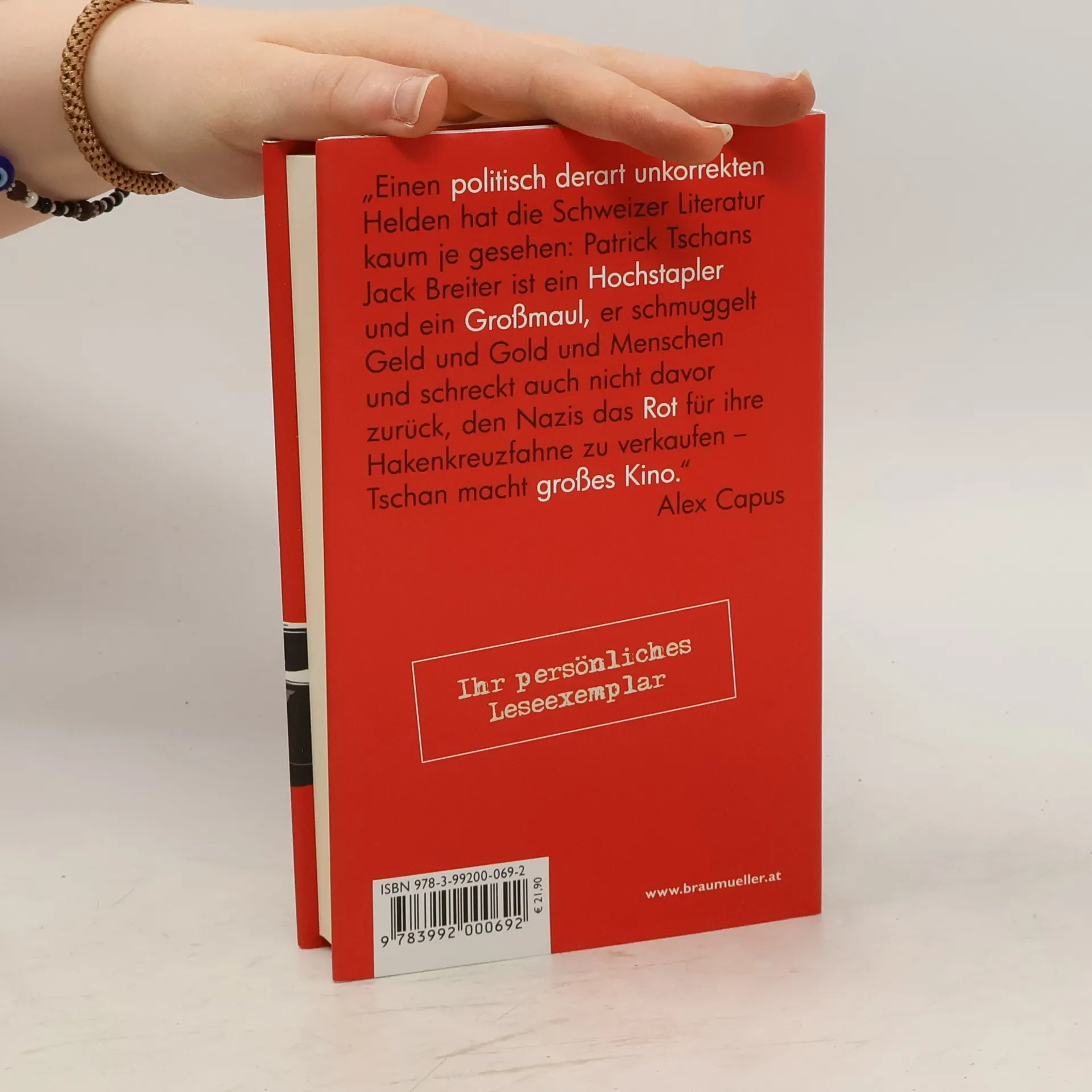 Einen politisch derart unkorrekten Helden hat die Schweizer Literatur kaum je gesehen: Patrick Tschans Jack Breiter ist ein Hochstapler und Großmaul, der Geld, Gold und Menschen schmuggelt und auch nicht davor zurückschreckt, den Nazis das Rot für ihre Hakenkreuzfahne zu verkaufen. Jack Breiter hat heute Nacht alles verloren: Geld, Stelle, Kost, Logis, Gesicht und Ansehen. Morgen droht ihm eine öffentliche Demütigung. 1929 ist er alles andere als ein Glückskind. Geboren in eine arme Schweizer Bauernfamilie, strebt er nach oben. Zunächst als erfolgloser Heiratsschwindler im noblen Palace Hotel in St. Moritz, später als Handelsvertreter beim Chemiekonzern Gugy. Mit dem Reichsbeflaggungsgesetz von 1935 verkauft Breiter erfolgreich die Farbe „Polarrot“ für die Hakenkreuzfahne und wird zum Starverkäufer. Doch als er sich in die Frau seines Chefs, eine Halbjüdin, verliebt, begibt er sich auf ein riskantes Goldschmuggel-Unterfangen und wird prompt ertappt. Tschans Held Jack Breiter ist faszinierend: sein Einfallsreichtum, seine Hinterlist und sein unbändiger Überlebenswille überraschen den Leser auf jeder Seite. Am Ende bleibt die Frage: Wer schuldet wem was?