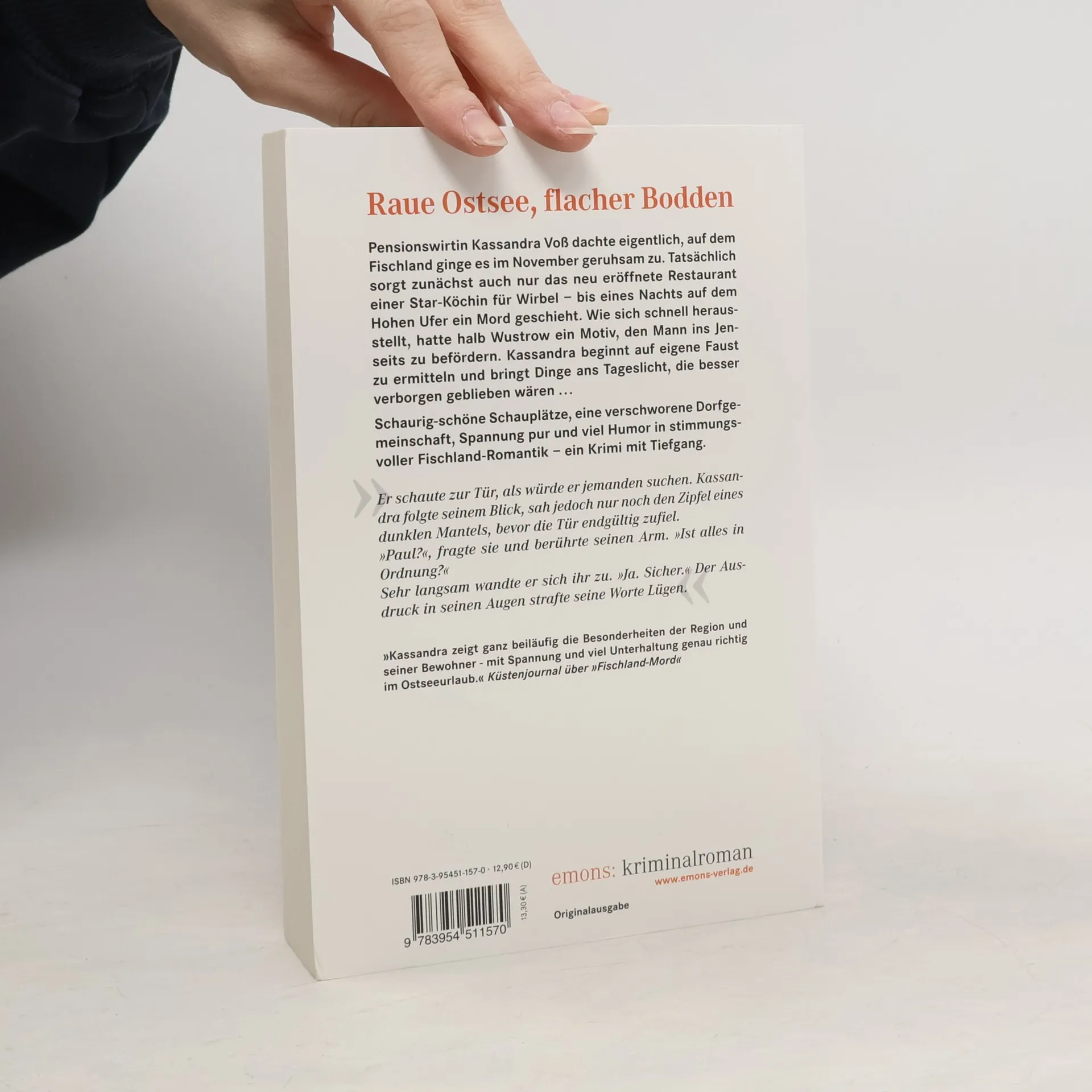 Pensionswirtin Kassandra Voß dachte eigentlich, auf dem Fischland ginge es im November geruhsam zu. Tatsächlich sorgt zunächst auch nur das neu eröffnete Restaurant einer Star-Köchin für Wirbel – bis eines Nachts auf dem Hohen Ufer ein Mord geschieht. Wie sich sehr schnell herausstellt, hatte halb Wustrow ein Motiv, den Mann ins Jenseits zu befördern. Kassandra beginnt auf eigene Faust zu ermitteln, und bringt Dinge ans Tageslicht, die besser verborgen geblieben wären …