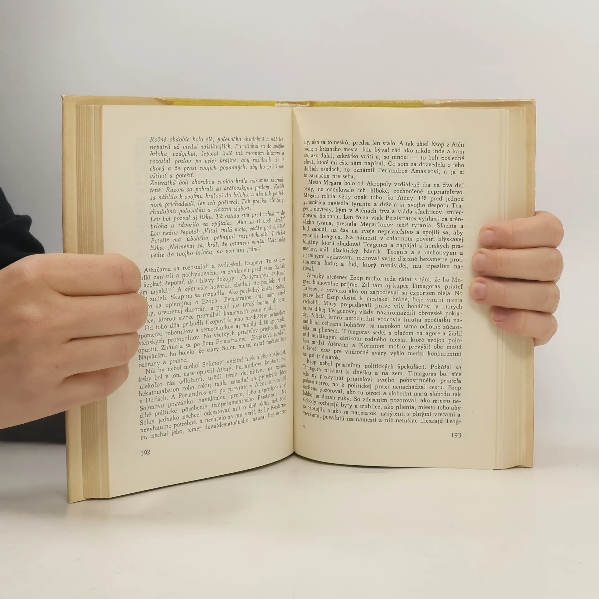 Autor preštudoval všetku dostupnú literatúru o starovekom bájkárovi Ezopovi a vytvoril románovú fresku sformovanú zo siedmich fiktívnych záznamov, ktoré tvoria zápisky obchodníka s otrokmi, výpoveď kurtizány, rozprávanie otroka, glosy člena kňažského kolégia v Delfách a ď. Verše v texte prebásnili Ivan Kupec, M. Kraus, Ervín Mikula a M. Stanislav. Prvé vydanie, edícia Spoločnosť priateľov krásnych kníh.