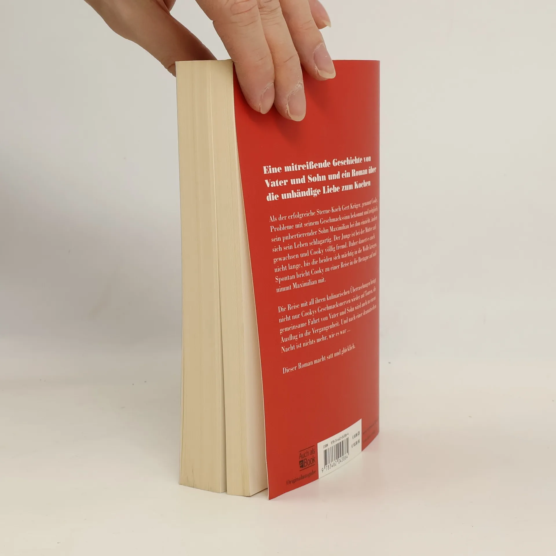 Ein lebenspralles Roadmovie über das Vatersein und ein mitreißender Roman über die Leidenschaft fürs Kochen Das Gourmet-Restaurant des Erzählers Gert Krüger, genannt Cooky, läuft ebenso gut wie seine übrigen gastronomischen Unternehmungen. Doch plötzlich der Schock: Der hochdekorierte Sternekoch verliert seinen Geschmackssinn. Und als wäre das allein nicht schlimm genug, zieht auch noch sein pubertierender Sohn Maximilian bei ihm ein, um eine Ausbildung zum Koch zu machen. Der Junge ist bei der Mutter aufgewachsen und Gert völlig fremd. Und so ist es nur eine Frage der Zeit, bis die beiden sich mächtig in die Wolle kriegen. Als Gert sich entschließt, seinen Geschmackssinn auf einer Reise durch Frankreich neu zu justieren und seinen alten Freunden Betty und Lupo in der Normandie einen Besuch abzustatten, wo diese ihre Faszination für Molekularküche ausleben, beschließt er, Maximilian mitzunehmen. Die Fahrt wird zu einer Reise in die Vergangenheit der 80er-Jahre und nimmt eine dramatische Wendung, aus der Vater und Sohn gemeinsam ein Stück erwachsener hervorgehen.
