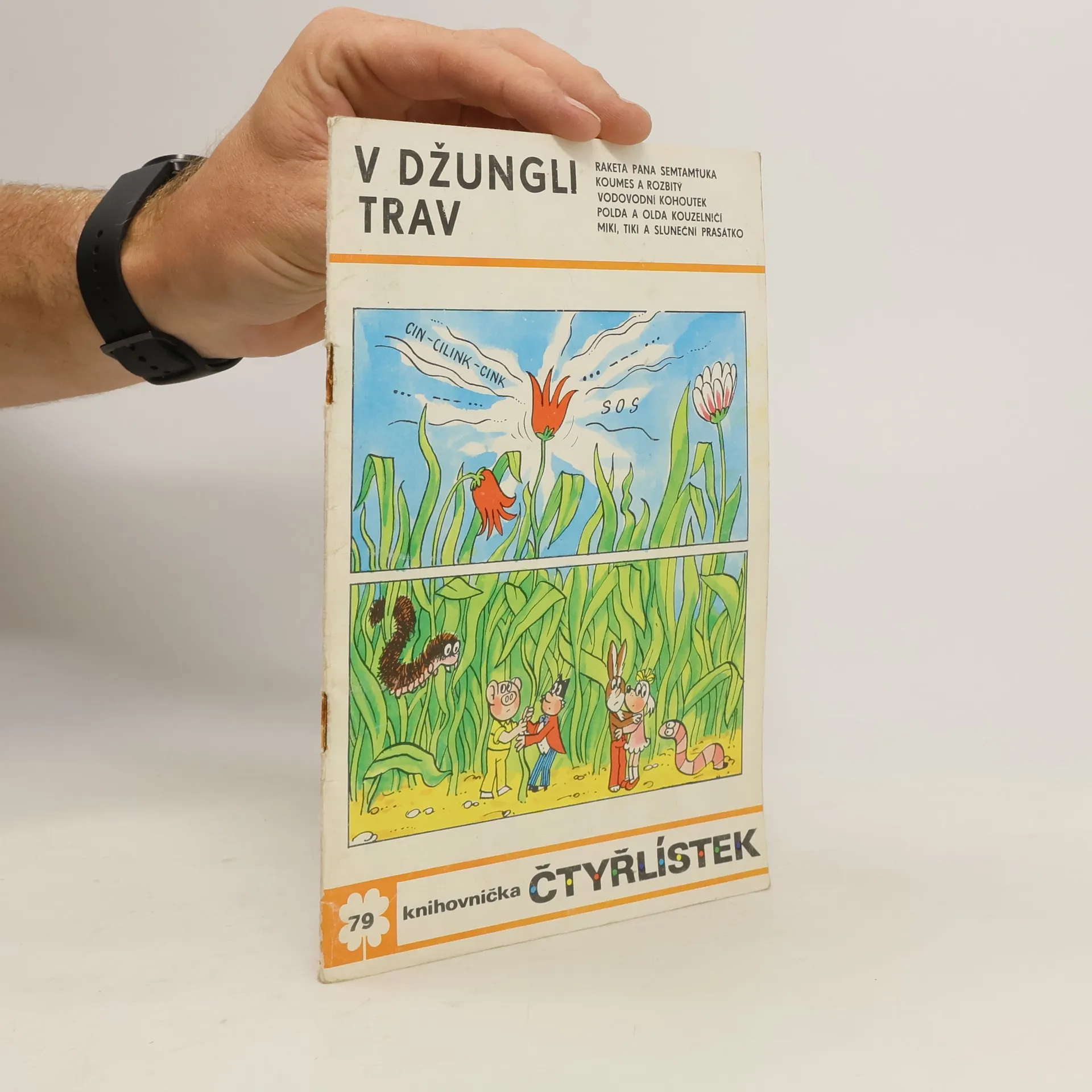 79. díl série. V džungli trav - Ljuba Štíplová, Jaroslav Němeček. Raketa pana Semtamťuka - Svatopluk Hrnčíř, Adolf Born. Koumes a rozbitý vodovodní kohoutek - Vladimír Kliman, Sylvie Vodáková. Polda a Olda kouzelničí - Petr Chvojka, Jaroslav Malák. Miki, Tiki a sluneční prasátko - Kateřina Krejčí, Eva Průšková.