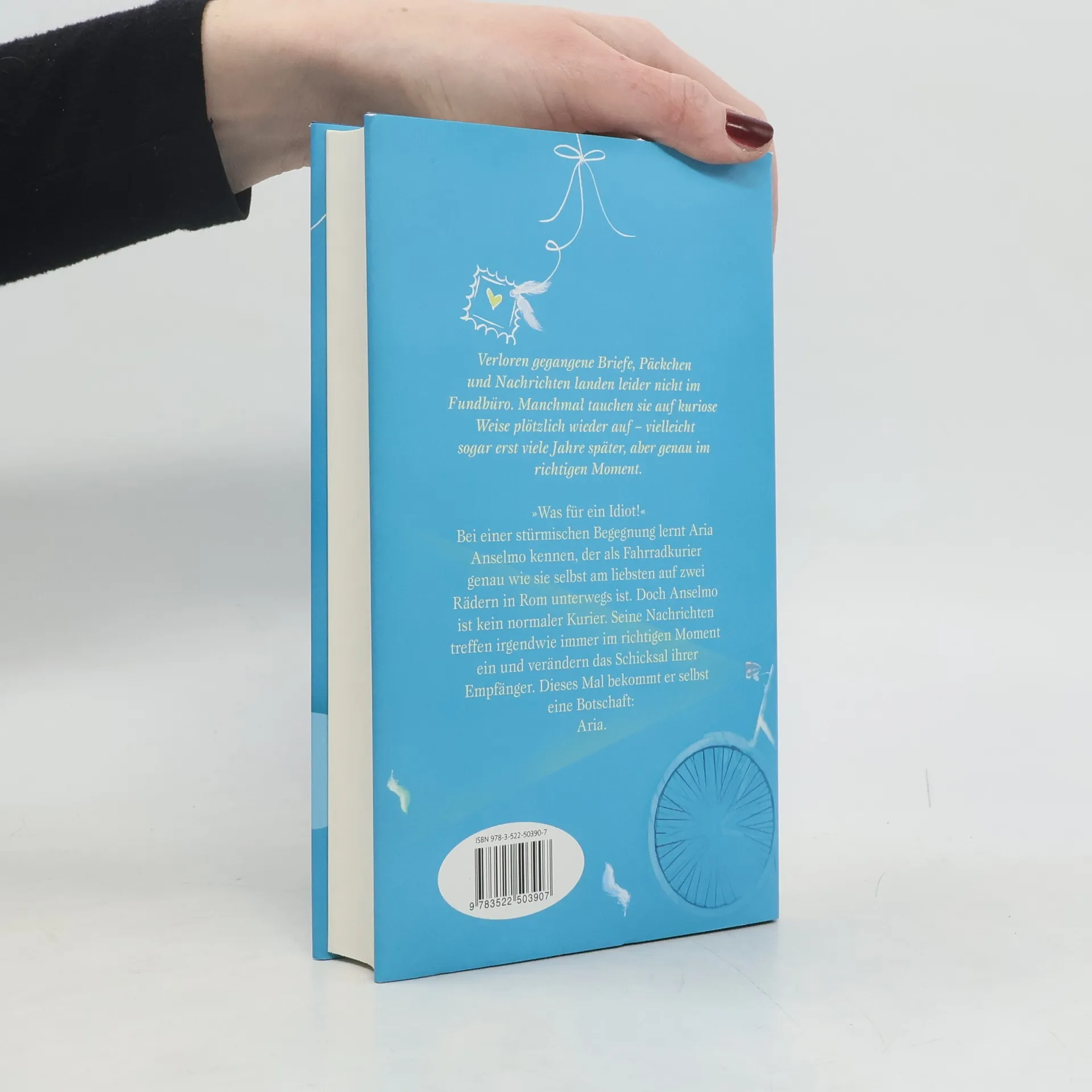 Verloren gegangene Briefe, Päckchen und Nachrichten landen leider nicht im Fundbüro. Manchmal tauchen sie auf kuriose Weise plötzlich wieder auf – vielleicht sogar erst viele Jahre später, aber genau im richtigen Moment. „Was für ein Idiot!“ Bei einer stürmischen Begegnung lernt Aria Anselmo kennen, der als Fahrradkurier genau wie sie selbst am liebsten auf zwei Rädern in Rom unterwegs ist. Doch Anselmo ist kein normaler Kurier. Seine Nachrichten treffen irgendwie immer im richtigen Moment ein und verändern das Schicksal ihrer Empfänger. Dieses Mal bekommt er selbst eine Botschaft: Aria.