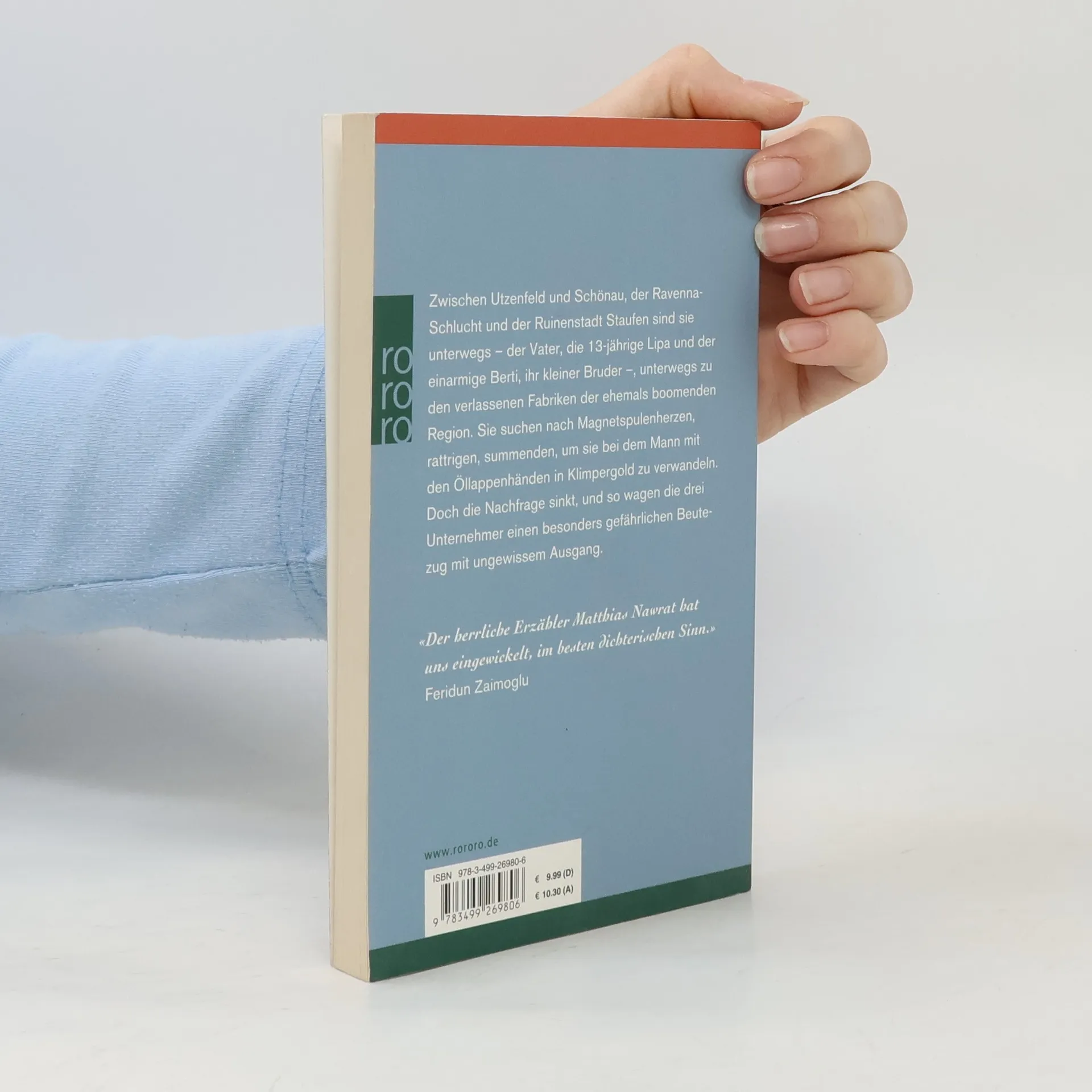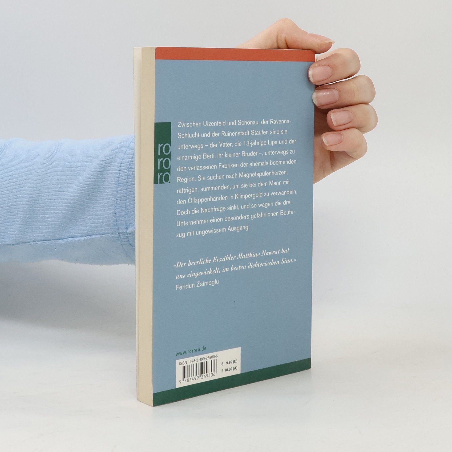 Zwischen Utzenfeld und Schönau, der Ravenna-Schlucht und der Ruinenstadt Staufen sind sie unterwegs - der Vater, die 13-jährige Lipa und der einarmige Berti, ihr kleiner Bruder -, unterwegs zu den verlassenen Fabriken der ehemals boomenden Region. Sie suchen nach Magnetspulenherzen, rattrigen, summenden, um sie bei dem Mann mit den Öllappenhänden in Klimpergold zu verwandeln. Doch die Nachfrage sinkt, und so wagen die drei Unternehmer einen besonders gefährlichen Beutezug mit ungewissem Ausgang.