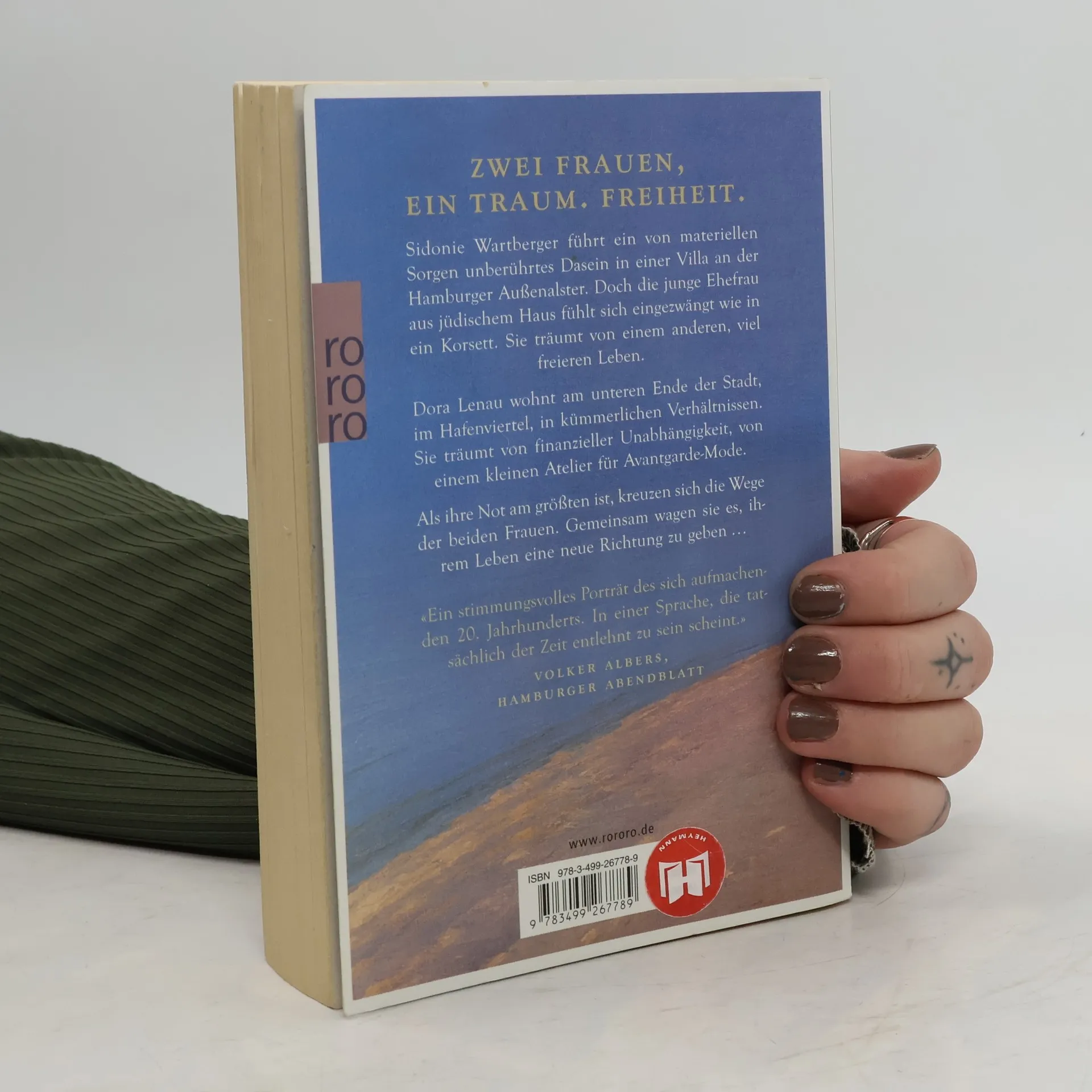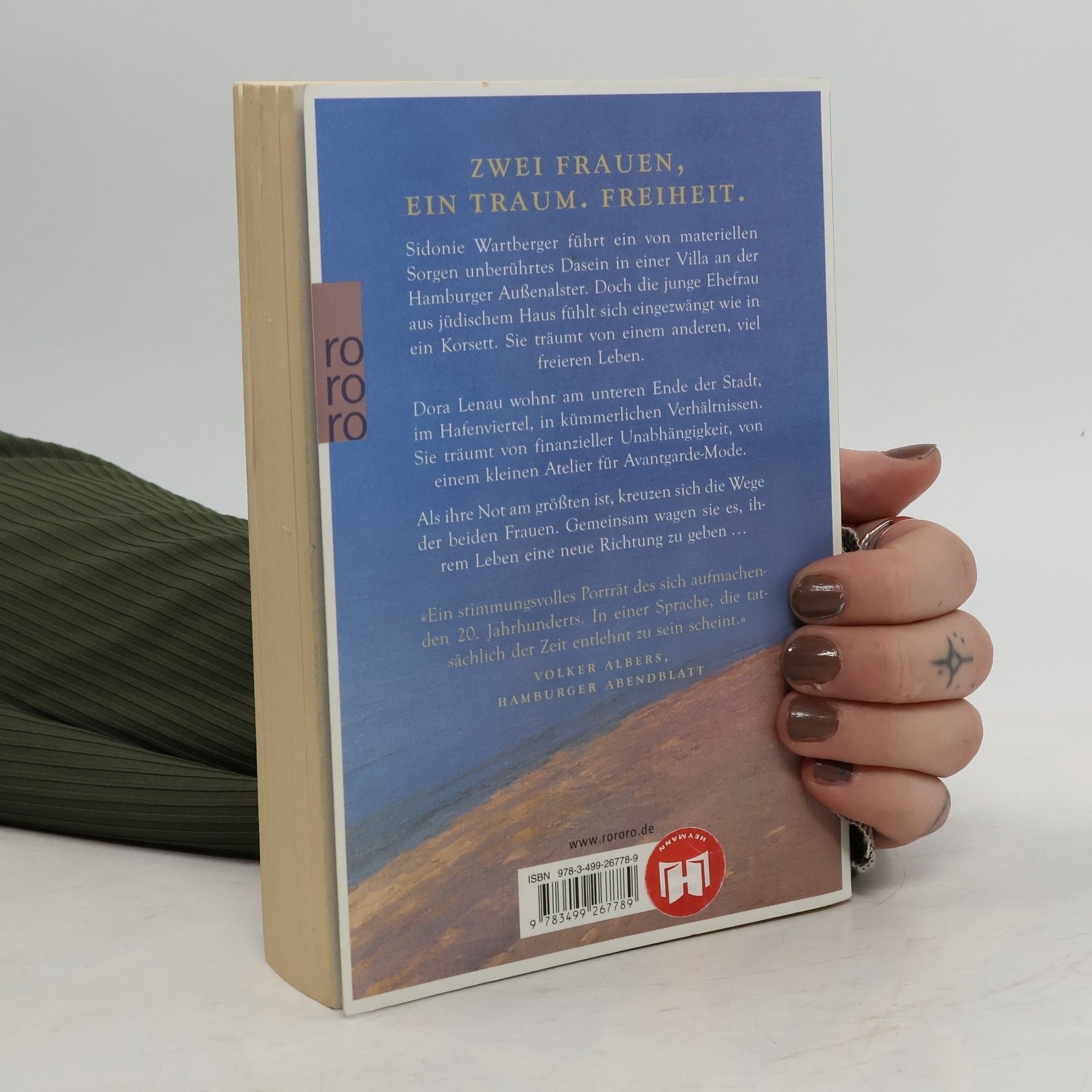 Zwei Frauen, ein Traum. Freiheit. Sidonie Wartberger führt ein von materiellen Sorgen unberührtes Dasein in einer Villa an der Hamburger Außenalster. Doch die junge Ehefrau aus jüdischem Haus fühlt sich eingezwängt wie in ein Korsett. Sie träumt von einem anderen, viel freieren Leben. Dora Lenau wohnt am unteren Ende der Stadt, im Hafenviertel, in kümmerlichen Verhältnissen. Sie träumt von finanzieller Unabhängigkeit, von einem kleinen Atelier für Avantgarde-Mode. Als ihre Not am größten ist, kreuzen sich die Wege der beiden Frauen. Gemeinsam wagen sie es, ihrem Leben eine neue Richtung zu geben ...