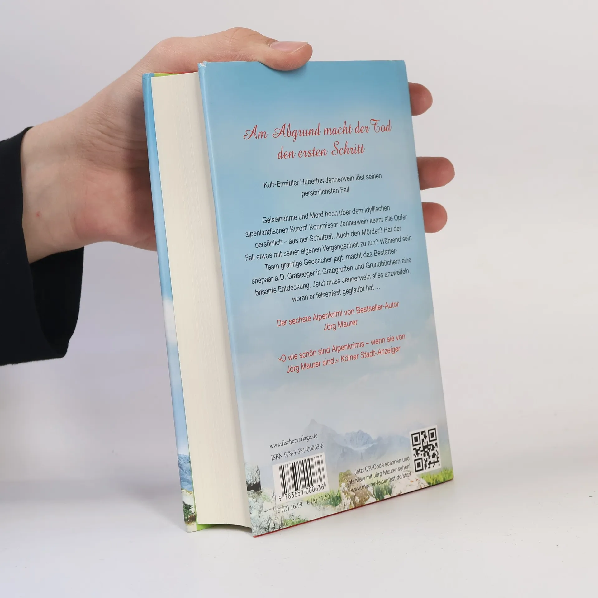 Am Abgrund macht der Tod den ersten Schritt. Kult-Ermittler Hubertus Jennerwein löst seinen persönlichsten Fall: Der sechste Alpenkrimi von Bestseller-Autor Jörg MaurerGeiselnahme auf einem Gipfel über dem idyllischen alpenländischen Kurort! Ein maskierter Mann bringt brutal eine Wandergruppe in seine Gewalt. Er stößt Drohungen aus, verlangt nach Informationen. Kurz danach stürzt eine Geisel den Abgrund hinunter. Als Kommissar Jennerwein alarmiert wird, merkt er schockiert, dass er alle Opfer persönlich kennt – aus der Schulzeit. Kennt er womöglich auch den Mörder? Hat der Fall etwas mit seiner eigenen Vergangenheit zu tun? Während sein Team grantige Geocacher jagt, macht das Bestatterehepaar a. D. Grasegger in Grabgruften und Grundbüchern eine brisante Entdeckung. Jetzt muss Jennerwein alles anzweifeln, woran er felsenfest geglaubt hat …»Auf höchstem Alpen-Niveau. Ein Glück für die deutsche Unterhaltungsliteratur.« Deutschlandfunk»Zu Recht mit Kultstatus behaftet. Kommissar Jennerwein auf dem Bestsellergipfel.« Westdeutsche Allgemeine»Da schreibt einer, der weiß, was er tut. Sehr unterhaltsam.« Süddeutsche Zeitung»Maurer verbindet intelligent gebaute Spannung mit dezent groteskem Humor.« Hamburger Abendblatt