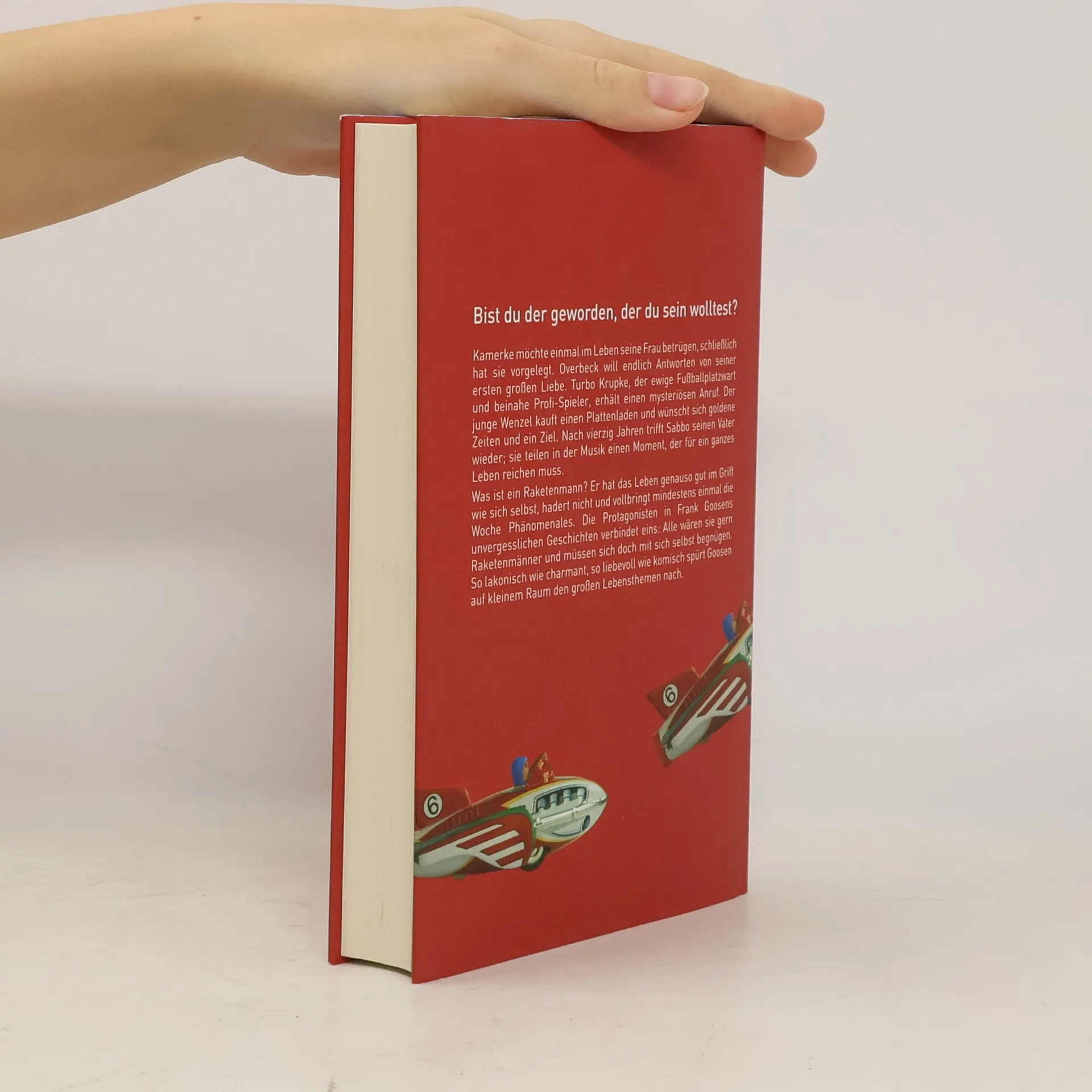 Bist du der geworden, der du sein wolltest? Frank Goosen erzählt in seinem neuen Buch von den Männern unserer Gegenwart. Von solchen, die ausbrechen wollen, und von jenen, die Halt suchen. Von Musik und alter Freundschaft. Von der Erinnerung an die erste große Liebe. Von Verlassenen und Suchenden, von Ängstlichen und Mutigen. Alle wären sie gern Raketenmänner und müssen sich doch mit sich selbst begnügen. Frohnberg schließt vor einer wichtigen Konferenz Facebook-Freundschaft mit einer Katze und realisiert wenig später, wie viel man im Leben falsch machen kann. Sein Mitarbeiter Ritter ahnt, dass Frohnberg ihn entlassen wird, und gibt seinem Leben kurzerhand eine neue Wendung. Zwei alte Schulfreunde, die zusammen in einer Band waren: Der eine unbegabt und schüchtern, der andere stets im Mittelpunkt; jetzt reiben sie sich an verlorenen Träumen und dem Alter und halten trotzdem zueinander. Wenzel kauft einen heruntergekommenen Plattenladen und wünscht sich goldene Zeiten und ein Ziel. Overbeck will endlich Antworten von seiner ersten großen Liebe. Und Turbo Krupke, der alte Fußballplatzwart und beinahe FC-Bayern-Spieler, bekommt einen mysteriösen Anruf und macht seinen Frieden mit dem Tod. Sabbo hat seinen Vater erst ein Mal im Leben gesehen. Vierzig Jahre ist das her. Jetzt kommt er nach Deutschland, um Songs vom Album »Raketenmänner« neu aufzunehmen. Sie teilen einen besonderen Moment, der für ein ganzes Leben reichen muss. Lakonisch, fein, witzig und warmherzig: Frank Goosens unvergessliche Geschichten spielen im Hier und Jetzt. Sie spüren auf kleinem Raum den großen Lebensthemen nach und bringen uns auf wundersame Weise zu uns selbst.