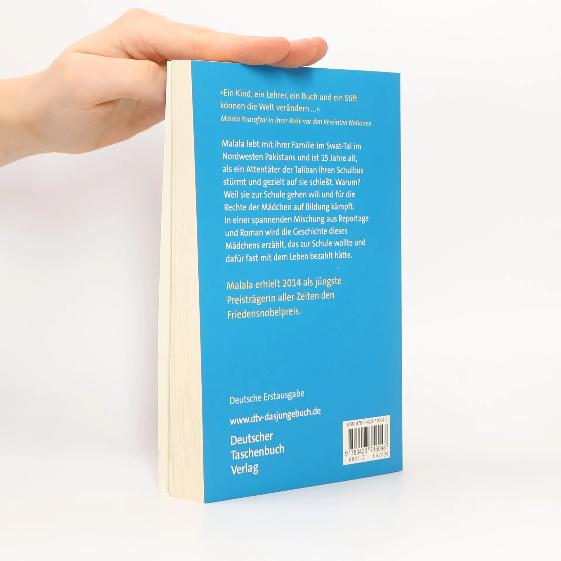 Friedensnobelpreisträgerin 2014 Malala Yousafzai ist 11 Jahre alt und lebt mit ihrer Familie im Swat-Tal im Nordwesten Pakistans, als die Taliban ein Schulverbot für Mädchen verhängen. Doch Malala geht weiterhin zum Unterricht und fordert das Recht der Mädchen auf Bildung. Bis im Oktober 2012 ein Attentäter der Taliban ihren Schulbus stürmt und gezielt auf sie schießt. Wie durch ein Wunder überlebt sie den Anschlag. Der Fall von Malala ging auf der ganzen Welt durch die Medien, 2014 erhielt sie den Friedensnobelpreis – und sie ist nun so berühmt, dass sie keinen Nachnamen mehr nötig hat.
