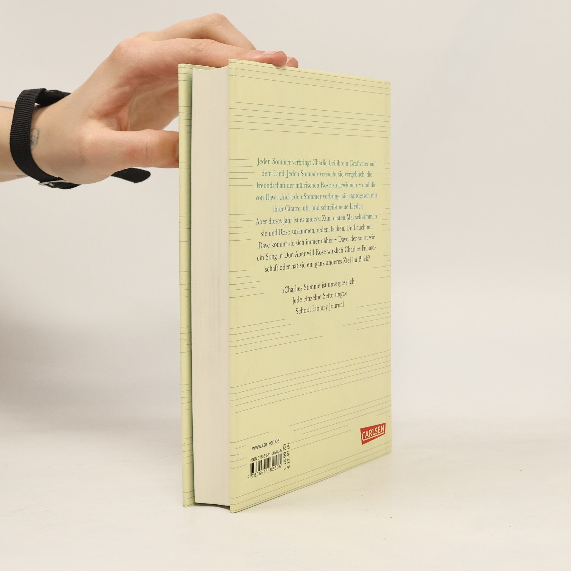 Jeden Sommer verbringt Charlie bei ihrem Großvater auf dem Land. Jeden Sommer versucht sie vergeblich, die Freundschaft der mürrischen Rose und deren Freunden Luke und Dave zu gewinnen - besonders die von Dave. Und jeden Sommer verbringt sie stattdessen mit ihrer Gitarre, übt und schreibt neue Lieder. Aber dieses Jahr ist es anders: Zum ersten Mal schwimmen sie und Rose zusammen, reden, lachen. Und auch mit Dave kommt sie sich immer näher – Dave, der so ist wie ein Song in Dur. Aber will Rose wirklich Charlies Freundschaft oder hat sie ein ganz anderes Ziel im Blick?