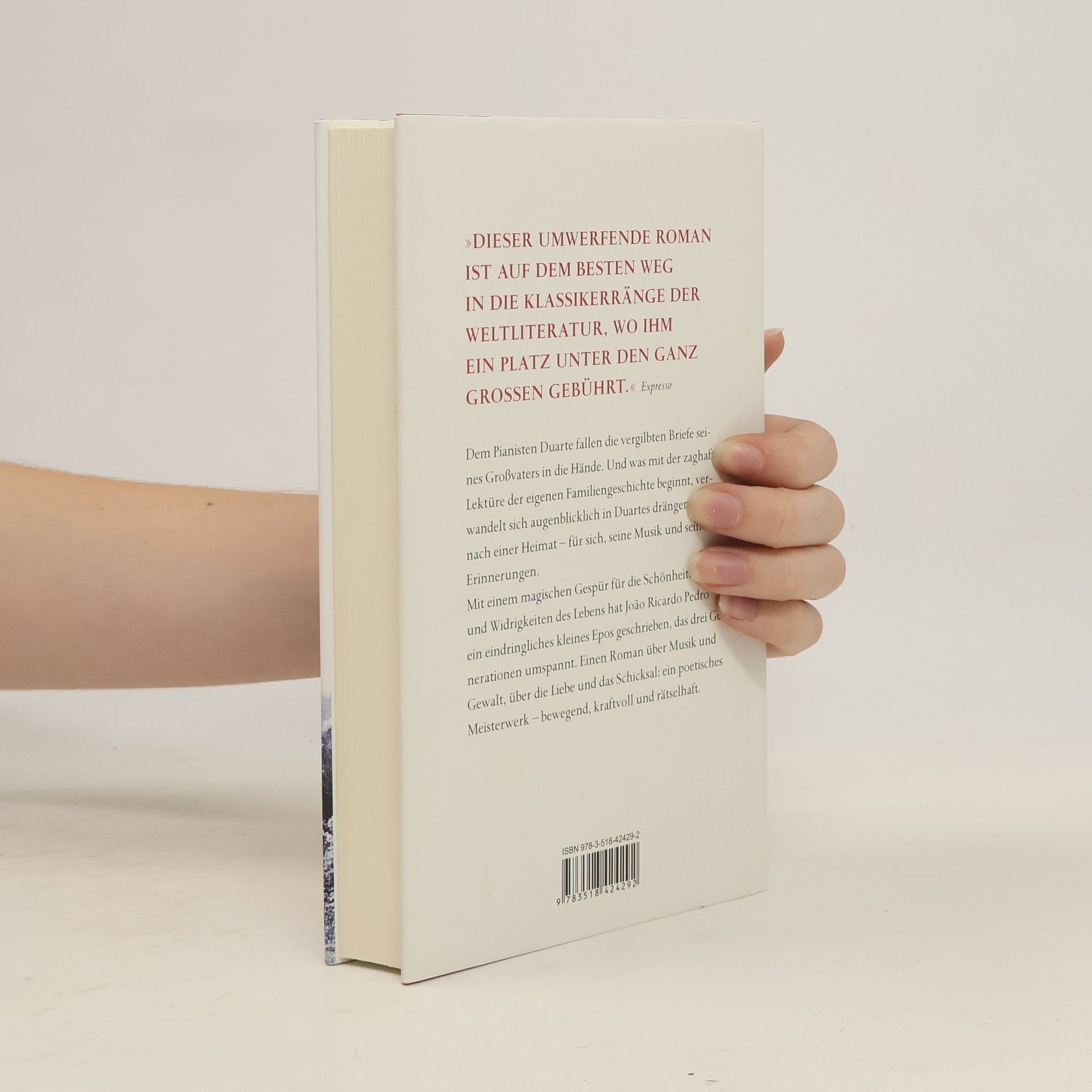 Duarte wächst auf umgeben von fremden Erinnerungen. Jeder Weg, jedes Haus im Ort hat schon längst seinen Platz in der Familiengeschichte. Kein Blick, ohne Spuren zu erkennen – die seines Vaters, gebrochen zurückgekehrt nach einem einzigen Abenteuer, die seines Großvaters, beseelt von dem einfachen Glück auf dem Land. Allein am Klavier kommt Duarte zu sich selbst und einer Geschichte. Doch nach und nach entpuppt sich die Verheißung der Musik als Gefahr, und Duarte droht zu verlieren, was ihm lieb ist. Erst als er die vergilbten Briefe seines Großvaters entdeckt, scheint sich eine letzte Chance zu bieten – auf Läuterung und ein still leuchtendes Lebensglück. Mit einem magischen Gespür für die Schönheiten und Widrigkeiten des Lebens hat João Ricardo Pedro ein eindringliches kleines Epos geschrieben, das drei Generationen umspannt. Einen Roman über Musik und Gewalt, über die Liebe und das Schicksal: ein poetisches Meisterwerk – bewegend, kraftvoll und rätselhaft.