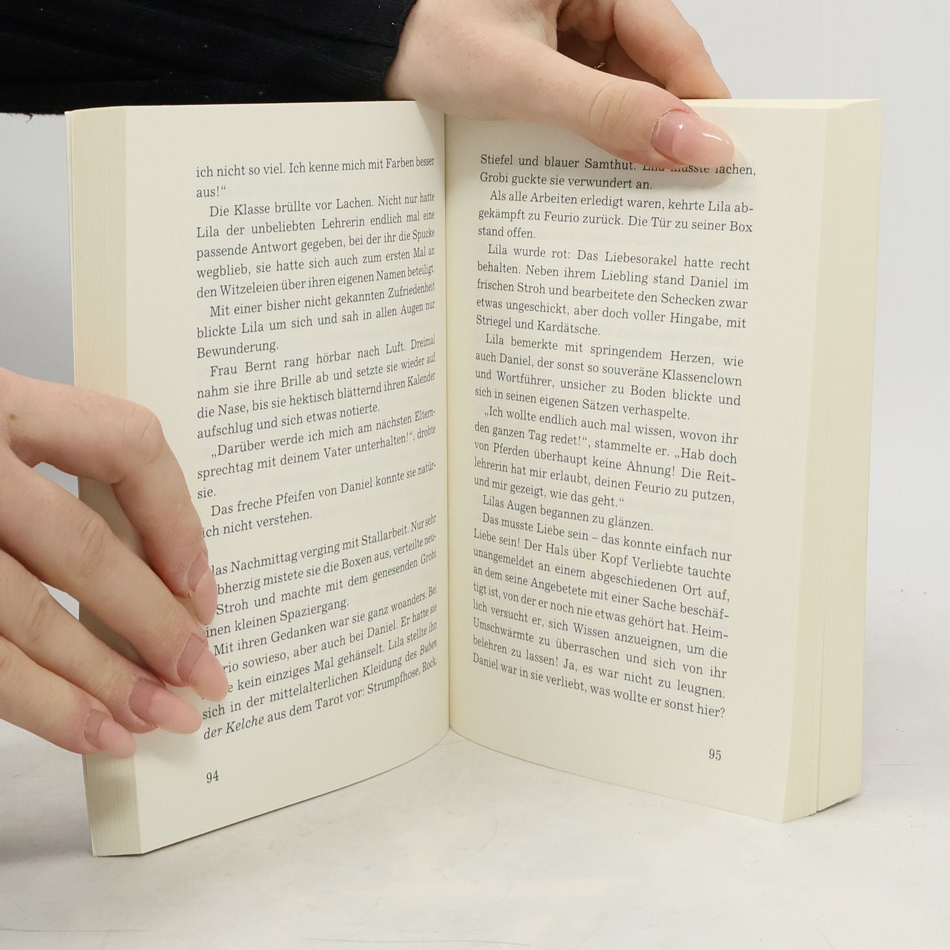 Franzi ist genervt: Ihre Mutter zwingt sie, Klavierstunden zu nehmen, dabei träumt sie von Pferden, seit sie denken kann. Caro dagegen hat die Nase voll vom Stallgeruch, denn Tag für Tag muss sie auf dem Reiterhof ihrer Eltern mithelfen. Höchste Zeit, ihre Rollen zu tauschen, finden die beiden Freundinnen! Lila hat ein ganz anderes Problem: Als Einzige in der Klasse wurde sie noch nie geküsst. Und als wäre das nicht genug, soll jetzt auch noch ihr Lieblingspferd Feurio verkauft werden! Lila beschließt Geld zu beschaffen, und Feurios Besitzerin zu werden. Doch das stellt sich als schwierig heraus, erst recht, als der Junge ihrer Träume auftaucht. Dieser Doppelband enthält die beiden Einzelbände „Ein Reitstall voller Peinlichkeiten“ und „Pleiten, Tricks und ein Pferd zu wenig“.