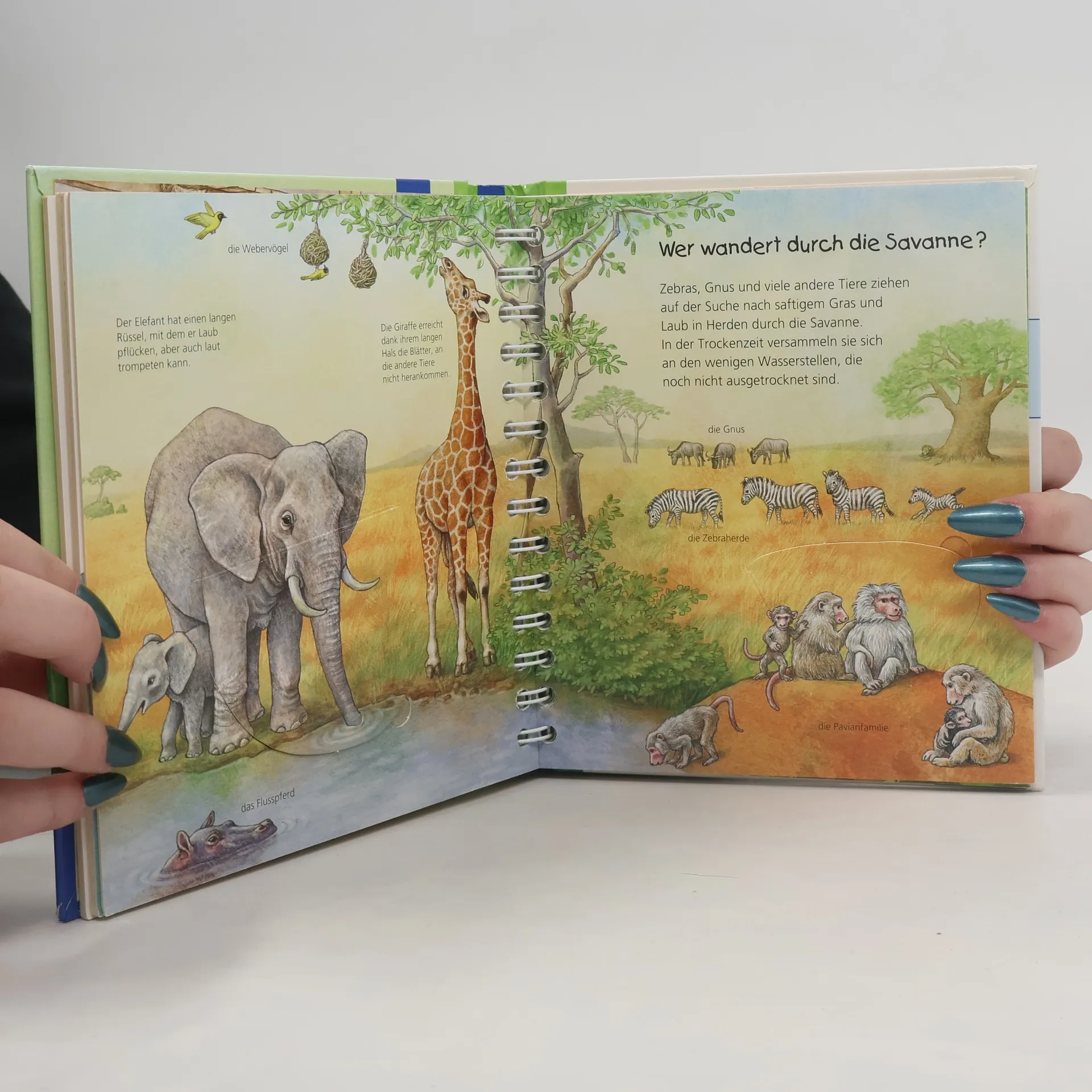 Zu welchem Tier gehören Lamm und Zicklein? Wie stark ist eine Ameise? Und wovon ernährt sich der Kolibri? In diesem Bilderlexikon lernen Kinder auf zwölf Doppelseiten die faszinierende Welt der Tiere kennen. Neben heimischen Vertretern aus Wiese, Wald, Park oder Bauernhof werden auch Bewohner der Savanne, des Dschungels, des Meeres und der Polargebiete vorgestellt. Große Szenen zeigen die Tiere in ihrem Lebensraum, Kinder können einige ihrer Lieblinge aber auch aus nächster Nähe bewundern.
